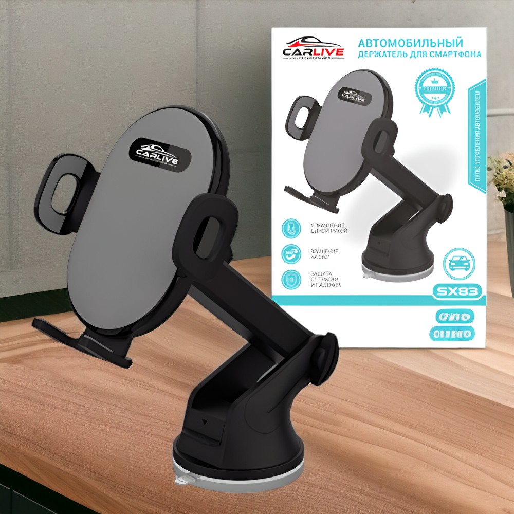 Почему купить Авто держатель на стекло/торпеду SX83 телескопический с вращением на 360 градусов, черный / Удобное и гибкое крепление для вашего смартфона оптом выгодно у нас: