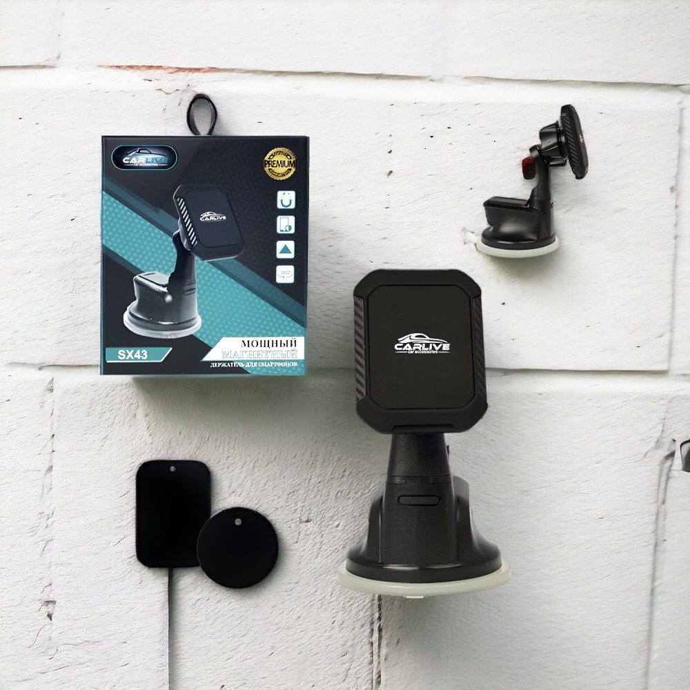 Купить Авто держатель на стекло/торпеду магнитный SX43 carbon / Прочное и стильное крепление для вашего смартфона на нашем сайте можно ОПТОМ от 20 шт. или меньше, если Вы покупаете у нас и другие товары (сборный заказ)