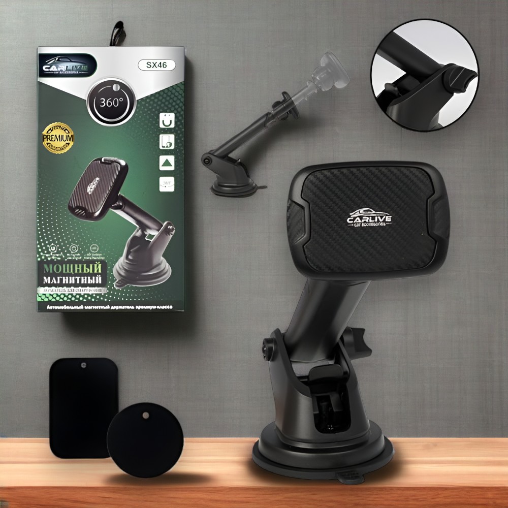 Купить Авто держатель на стекло/торпеду магнитный SX46 carbon телескопический с вращением на 360 градусов, черный на нашем сайте можно ОПТОМ от 20 шт. или меньше, если Вы покупаете у нас и другие товары (сборный заказ)
