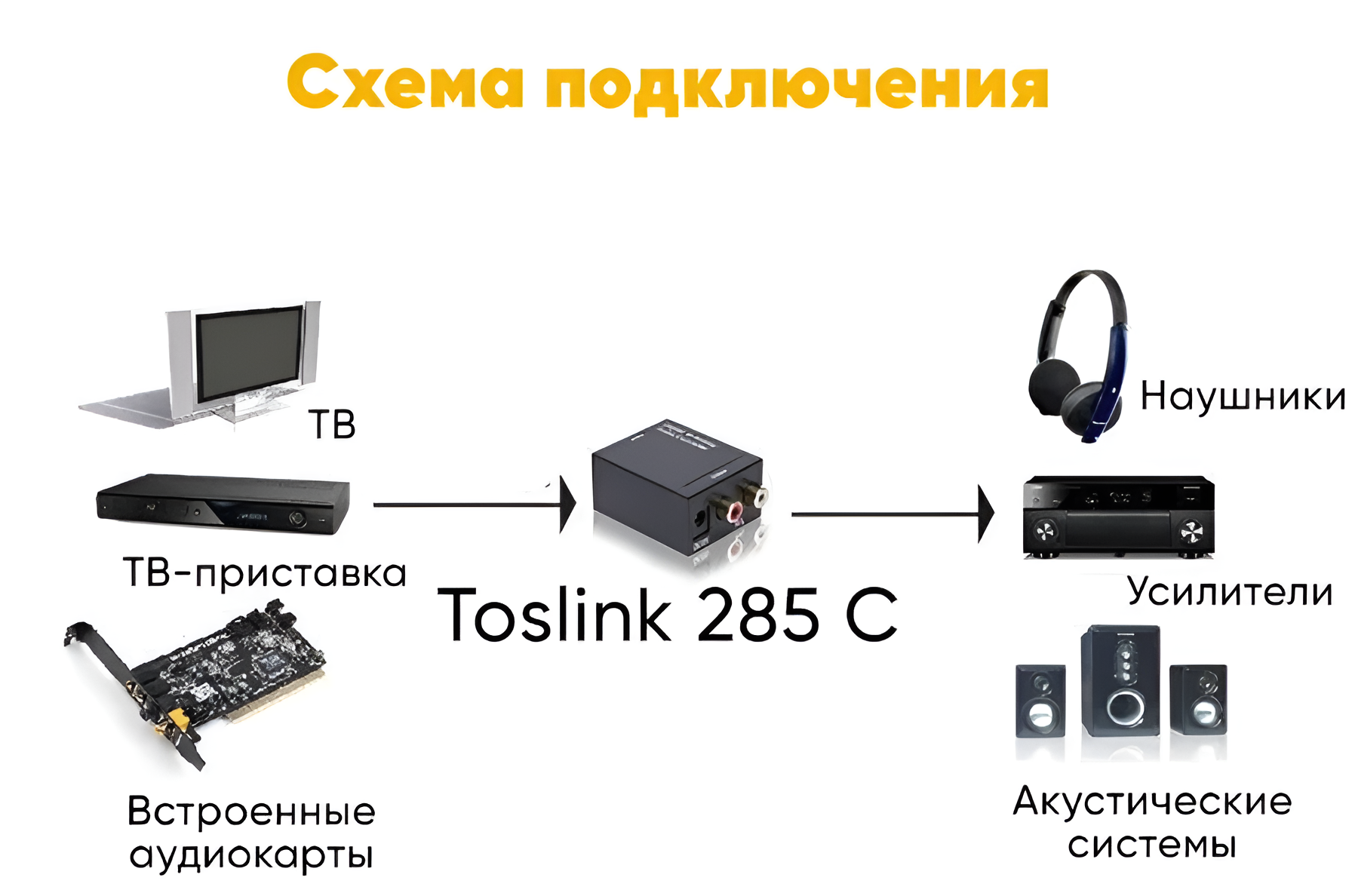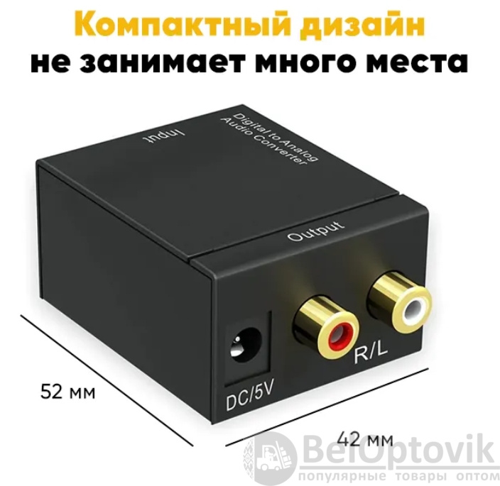 Адаптер AV Converter Toslink 285C – это высококачественное устройство для преобразования цифрового аудиосигнала в аналоговый.