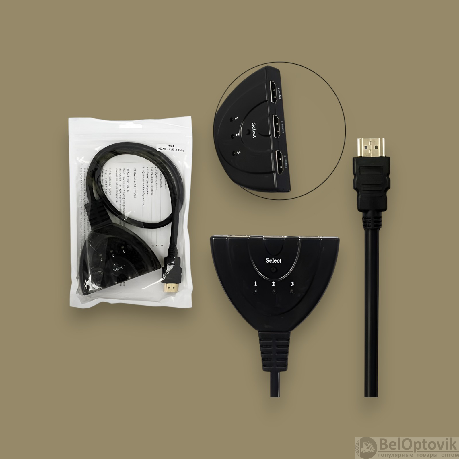 Почему купить Адаптер H54 HDMI HUB 3 Port, черный / Переходник для подключения трех HDMI устройств оптом выгодно у нас: