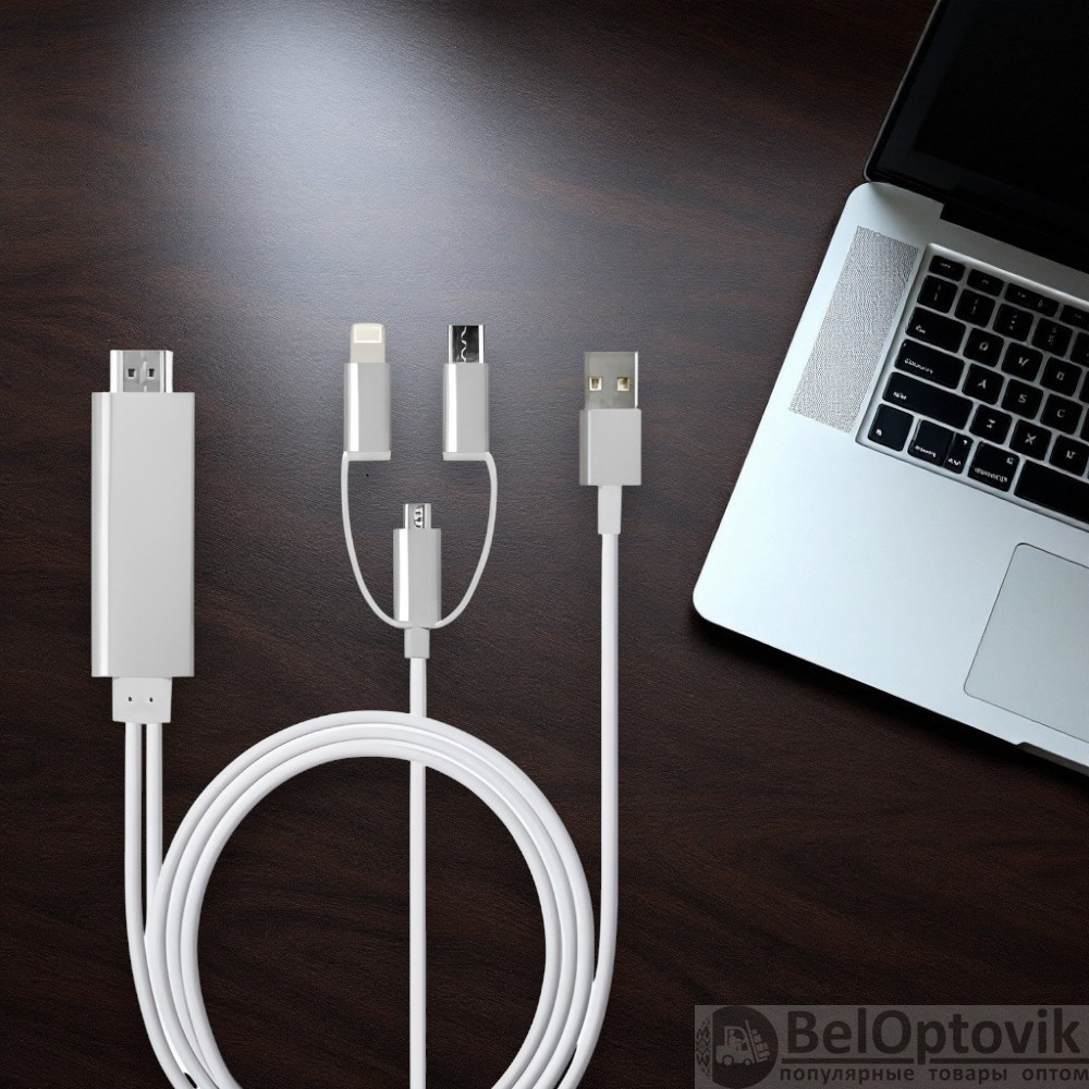 Купить Адаптер LD6 3in1 Lightning (M) / Micro USB (M) / Type-C (M) на HDTV, черный / Переходник для подключения устройств с Lightning, Micro USB и Type-C к HDTV на нашем сайте можно ОПТОМ от 20 шт. или меньше, если Вы покупаете у нас и другие товары (сборный заказ)