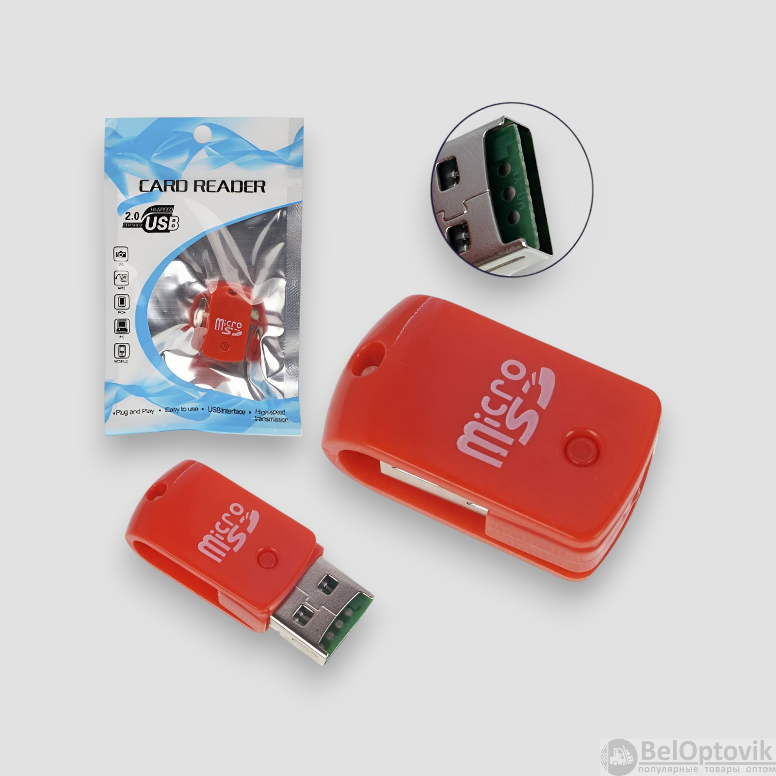 Почему купить Картридер micro SD USB58, красный / Чтение и запись карт памяти micro SD через USB-порт оптом выгодно у нас: