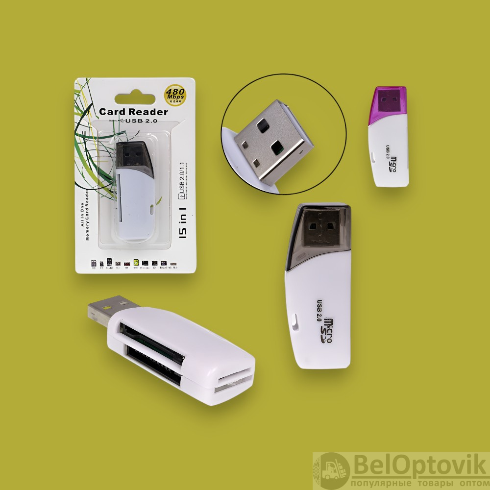 Купить Картридер универсальный USB54, 15 в 1 (SD, T-Flash, M2, MMC), 480 Мбит/с (USB 2.0), белый / Компактный и портативный, Plug and Play, Easy to use на нашем сайте можно ОПТОМ от 20 шт. или меньше, если Вы покупаете у нас и другие товары (сборный заказ)