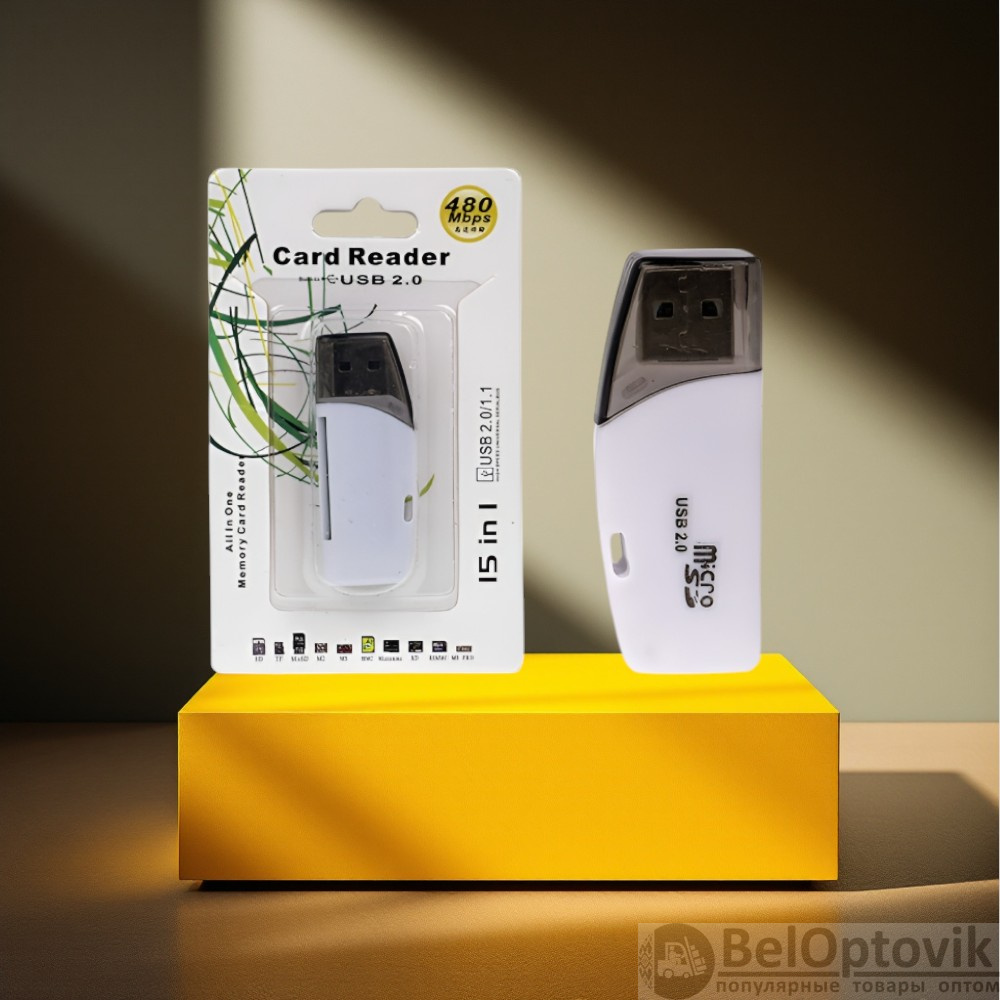 Почему купить Картридер универсальный USB54, 15 в 1 (SD, T-Flash, M2, MMC), 480 Мбит/с (USB 2.0), белый / Компактный и портативный, Plug and Play, Easy to use оптом выгодно у нас:
