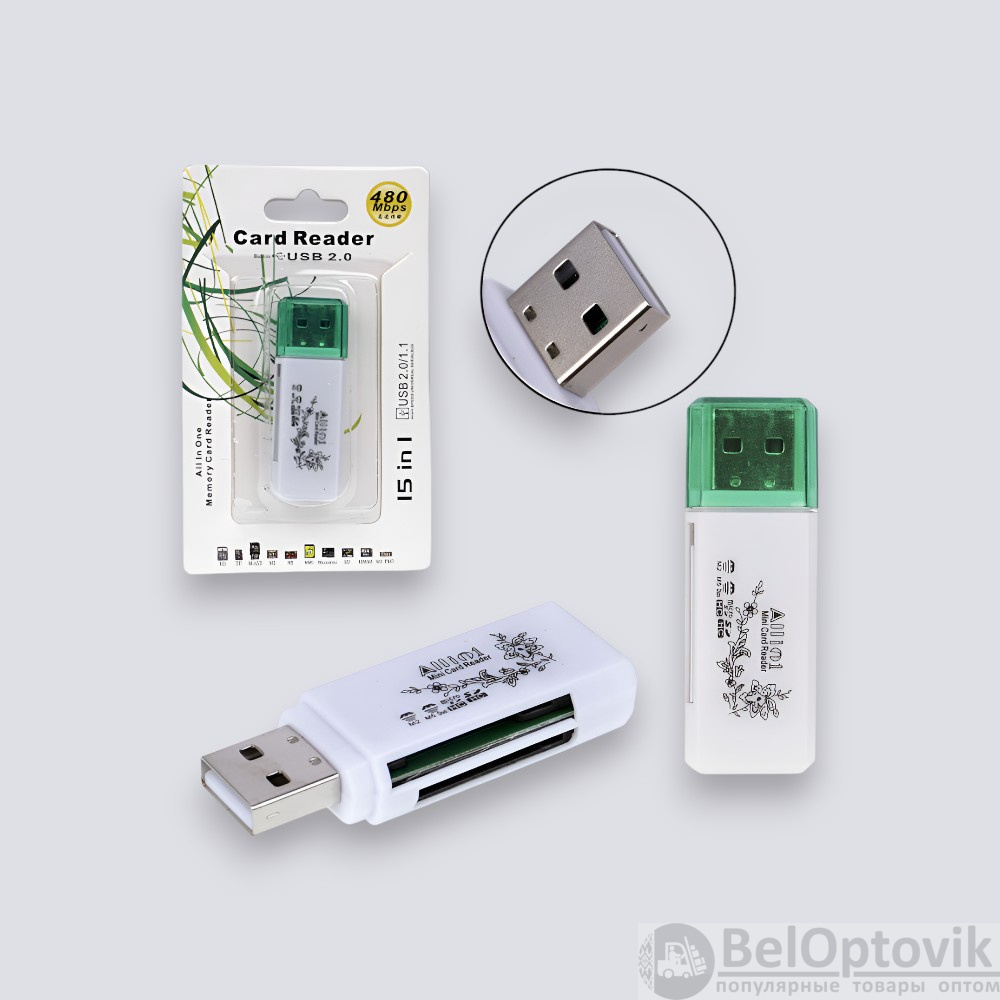 Купить Картридер универсальный USB56, 480 Мбит/с, USB 2.0, белый / Высокоскоростной доступ к вашим данным на нашем сайте можно ОПТОМ от 20 шт. или меньше, если Вы покупаете у нас и другие товары (сборный заказ)