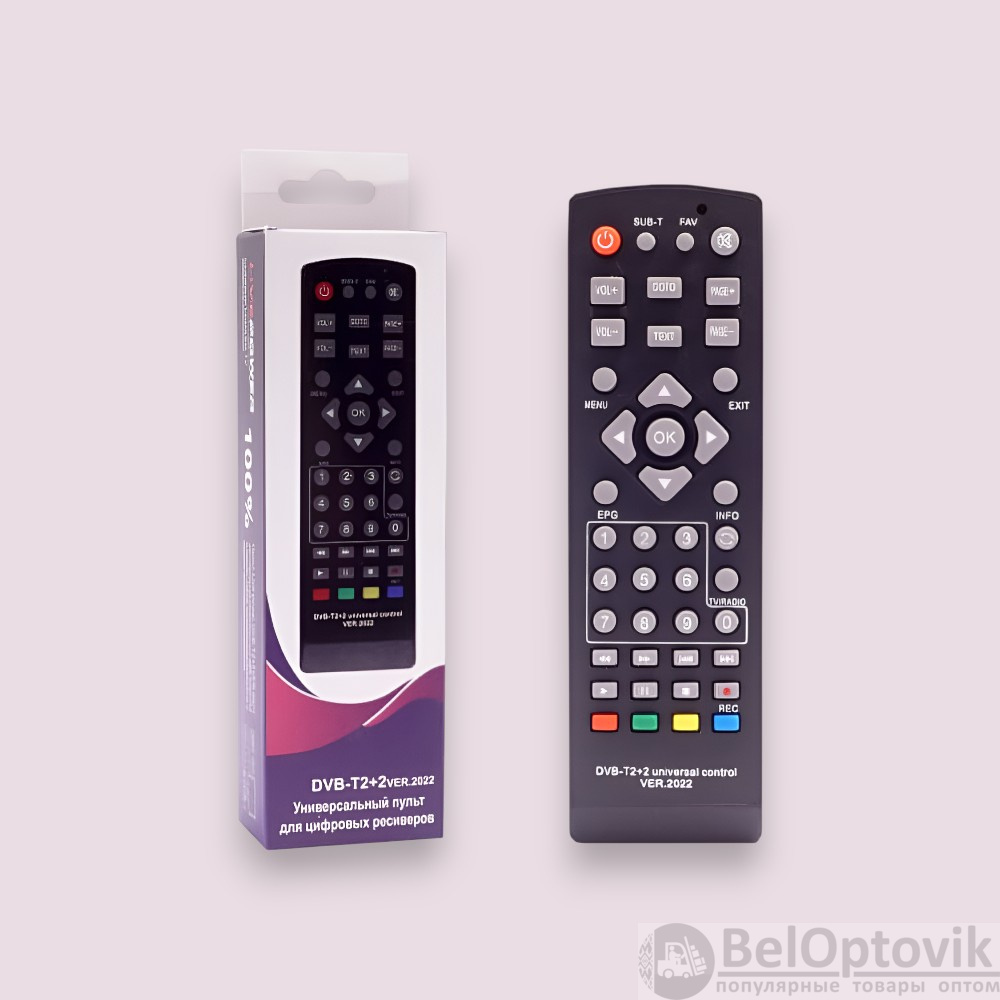 Почему купить Пульт д/у универсальный для ресиверов DVB T2+2 version 2025, IR интерфейс, радиус до 10 м, черный / Универсальное управление для всех DVB T2+2 ресиверов оптом выгодно у нас:
