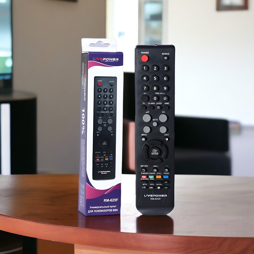 Черный цвет и стильный дизайн делают данный пульт привлекательным завершением любого телевизора, а эргономичное строение придает комфорт при управлении, позволяя без усилий переключаться между каналами и настраивать параметры.