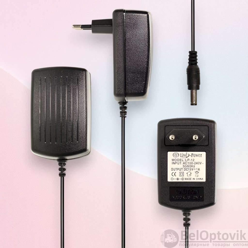 Купить Блок питания Live-Power 15V LP12, 15V, 1A, штекер 5.5*2.5, длина кабеля 900 мм, черный на нашем сайте можно ОПТОМ от 20 шт. или меньше, если Вы покупаете у нас и другие товары (сборный заказ)