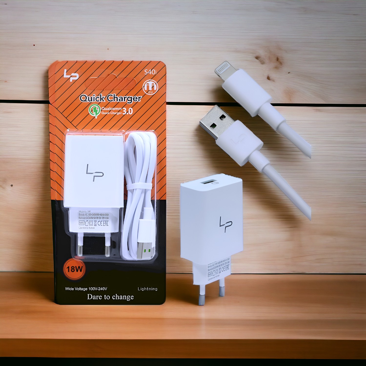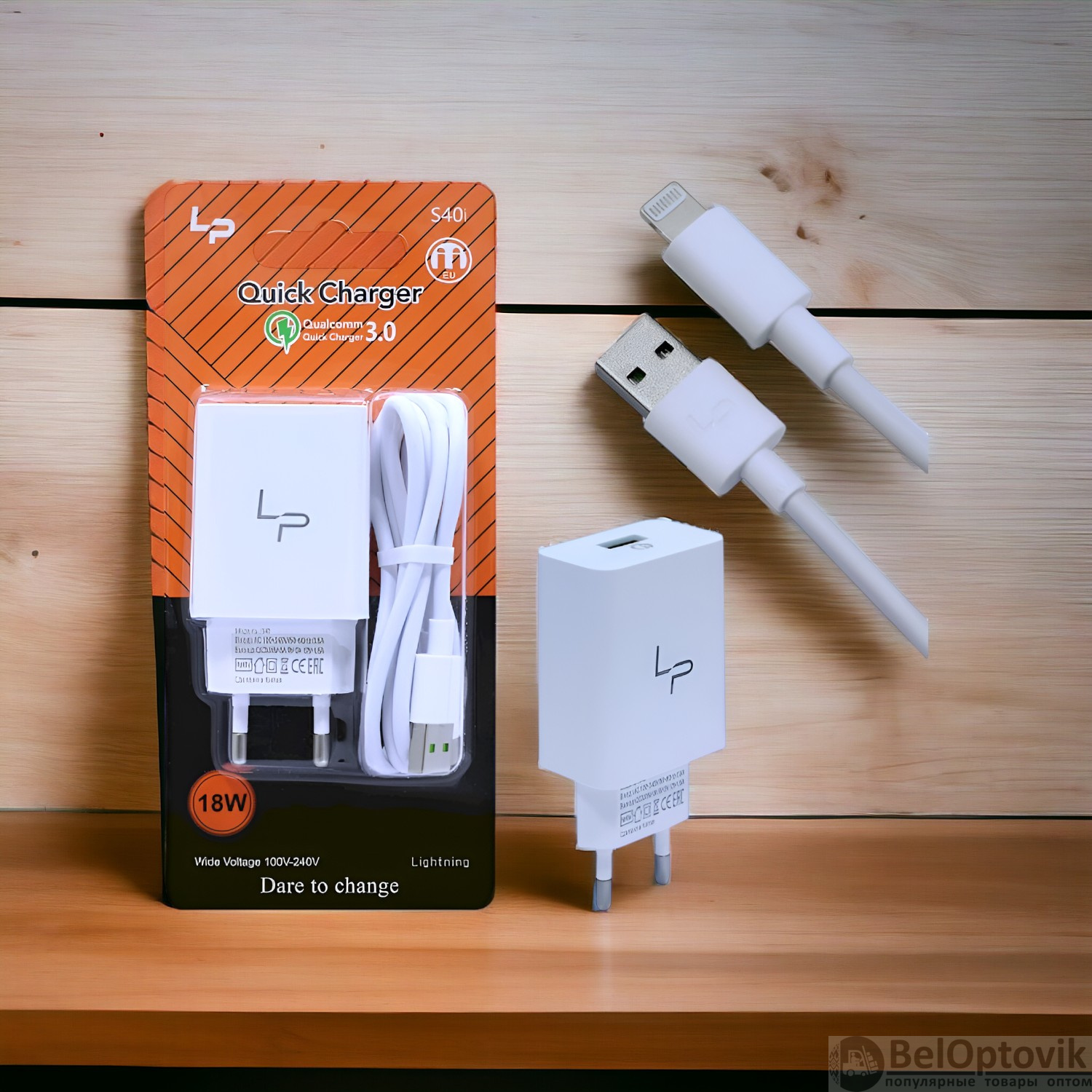 Купить Сетевое зарядное устройство LP S40i QC3.0 5V/3.1A, 1USB, с кабелем Lightning 1м, белый на нашем сайте можно ОПТОМ от 20 шт. или меньше, если Вы покупаете у нас и другие товары (сборный заказ)