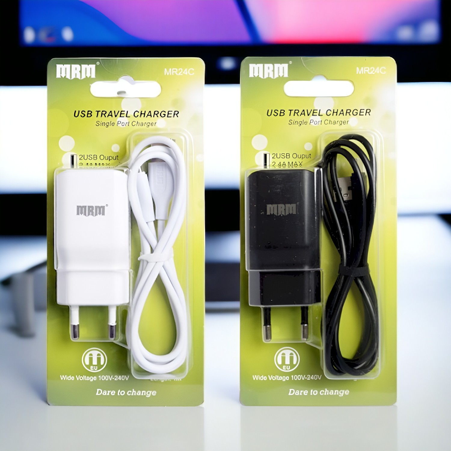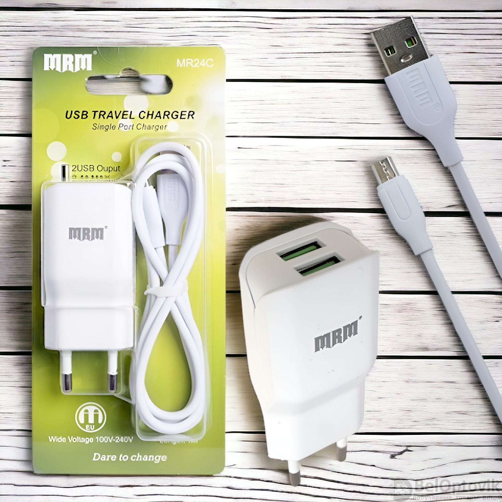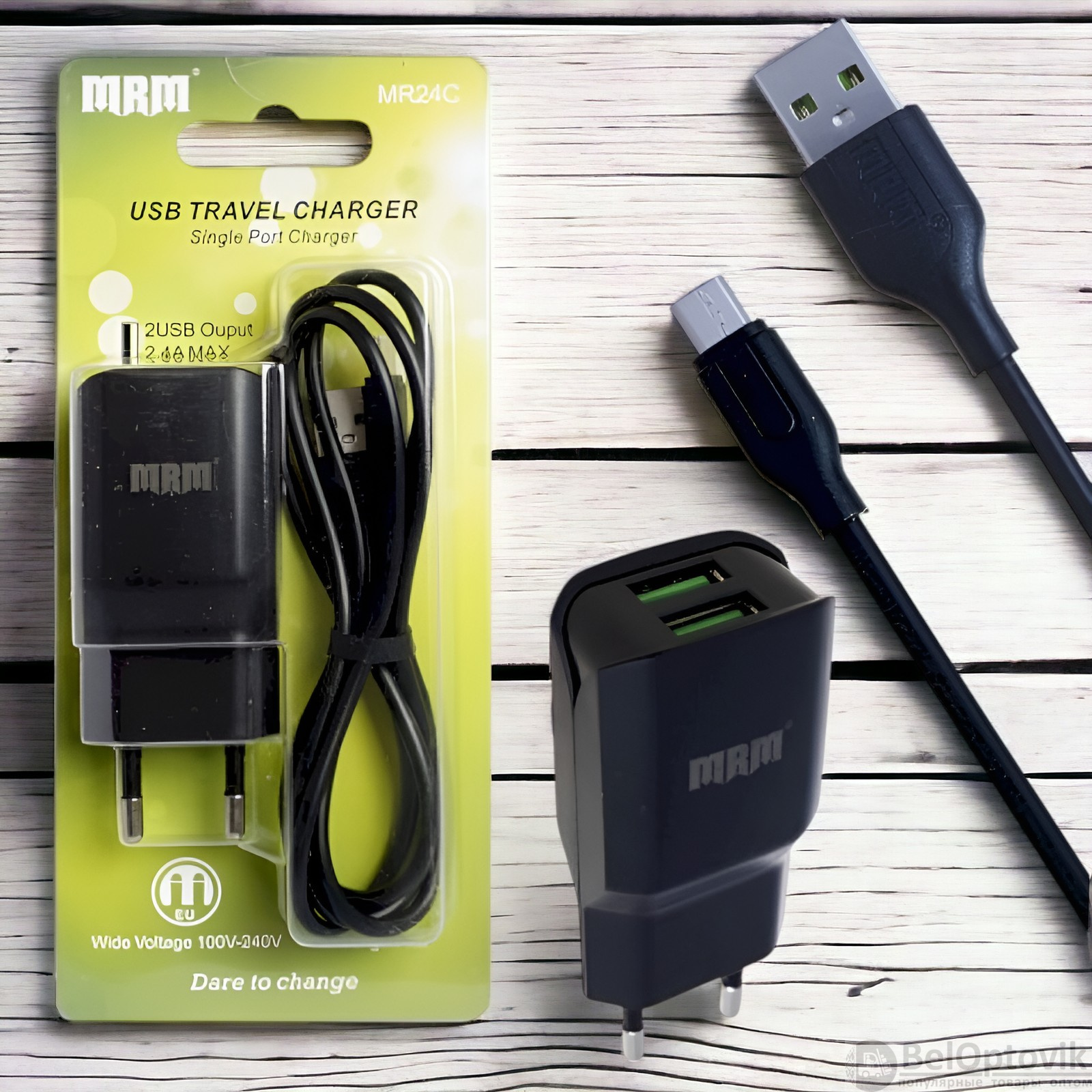Купить Сетевое зарядное устройство MRM MR24m 5V/2.4A, 2USB, с кабелем Micro 1,2м, черный и белый цвет на нашем сайте можно ОПТОМ от 20 шт. или меньше, если Вы покупаете у нас и другие товары (сборный заказ)