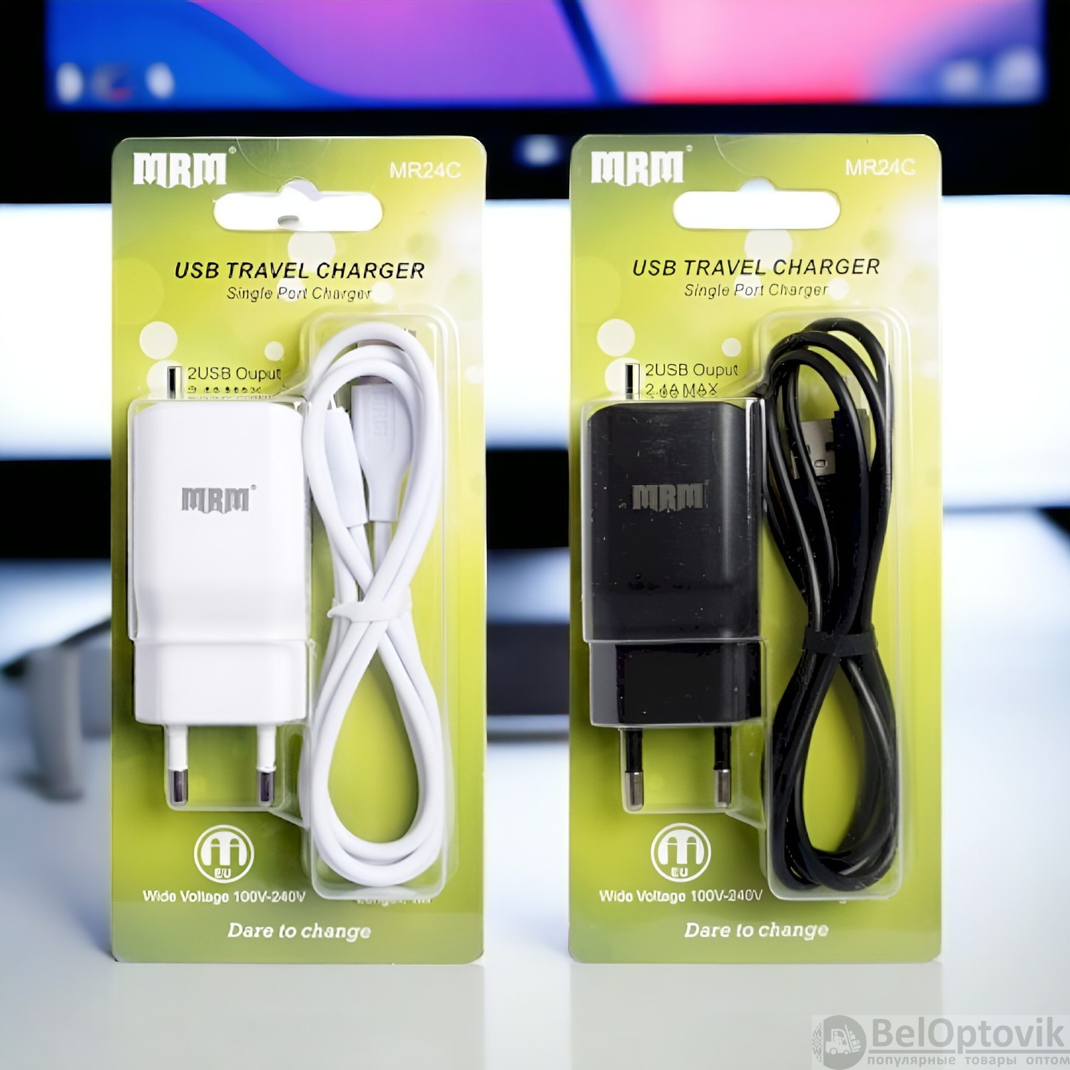 Почему купить Сетевое зарядное устройство MRM MR24m 5V/2.4A, 2USB, с кабелем Micro 1,2м, черный и белый цвет оптом выгодно у нас: