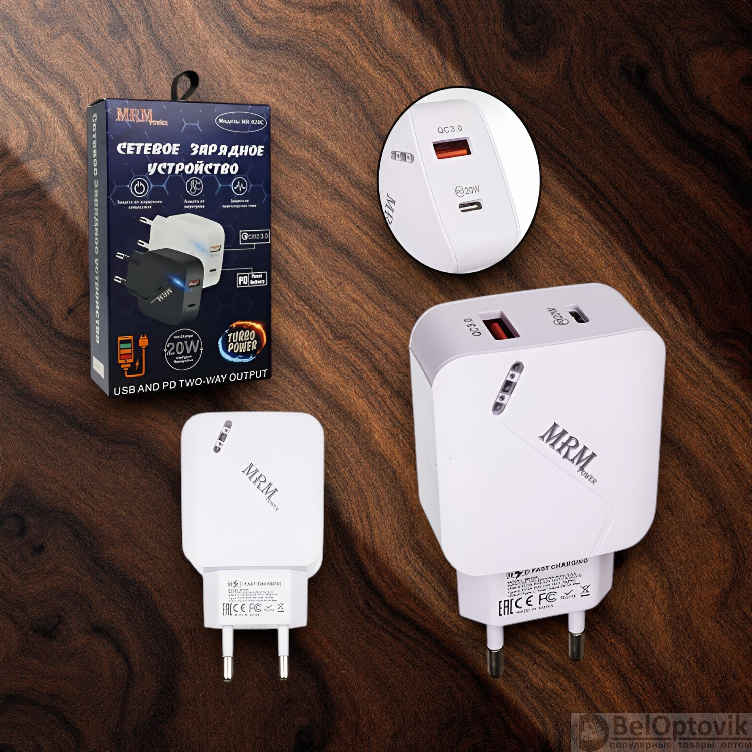 Купить Сетевое зарядное устройство MRM MR820C PD 20W + QC3.0, белый на нашем сайте можно ОПТОМ от 20 шт. или меньше, если Вы покупаете у нас и другие товары (сборный заказ)