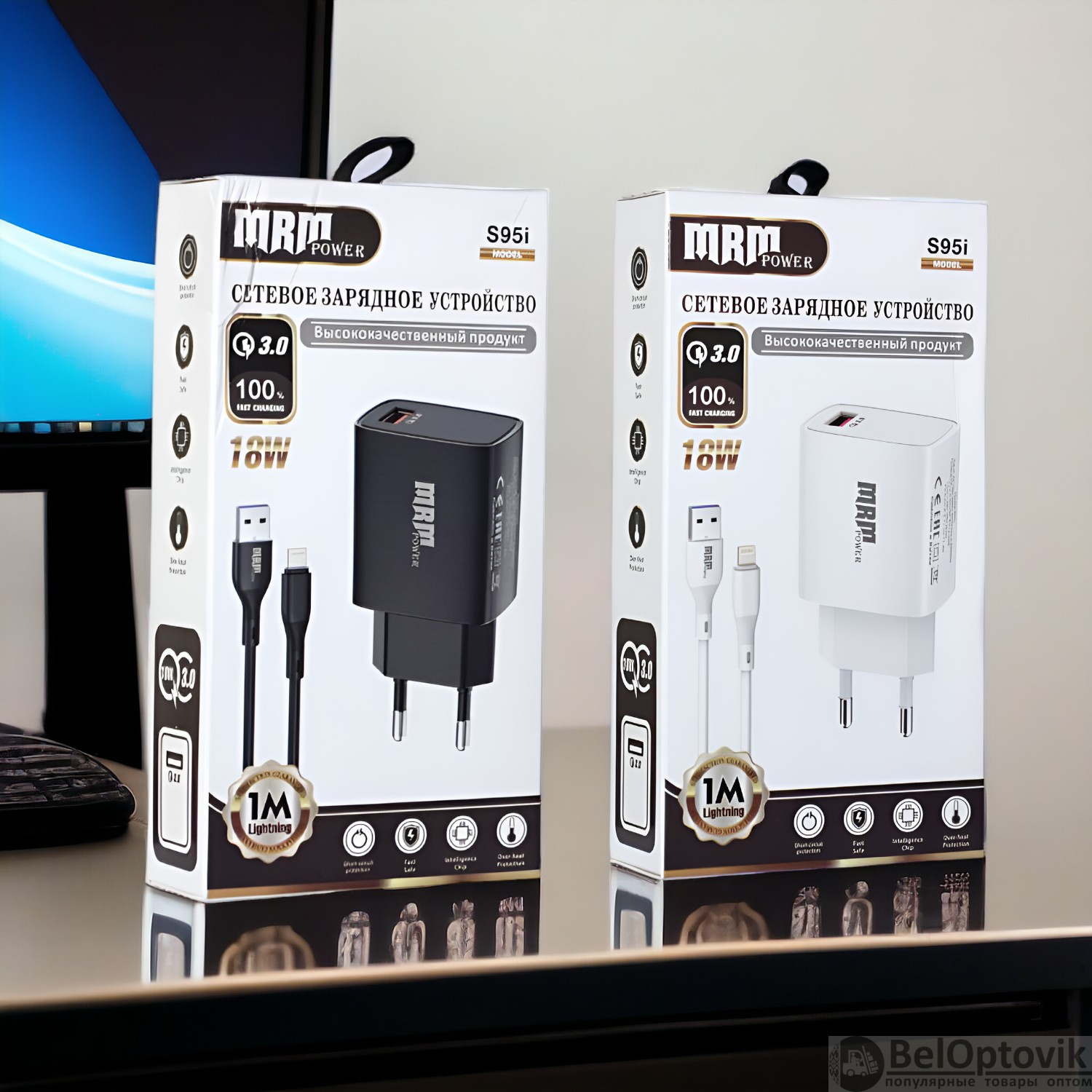 Почему купить Сетевое зарядное устройство MRM S95 5V/3.1A, 1USB QC3.0, с кабелем Lightning 1м, черный и белый цвет оптом выгодно у нас: