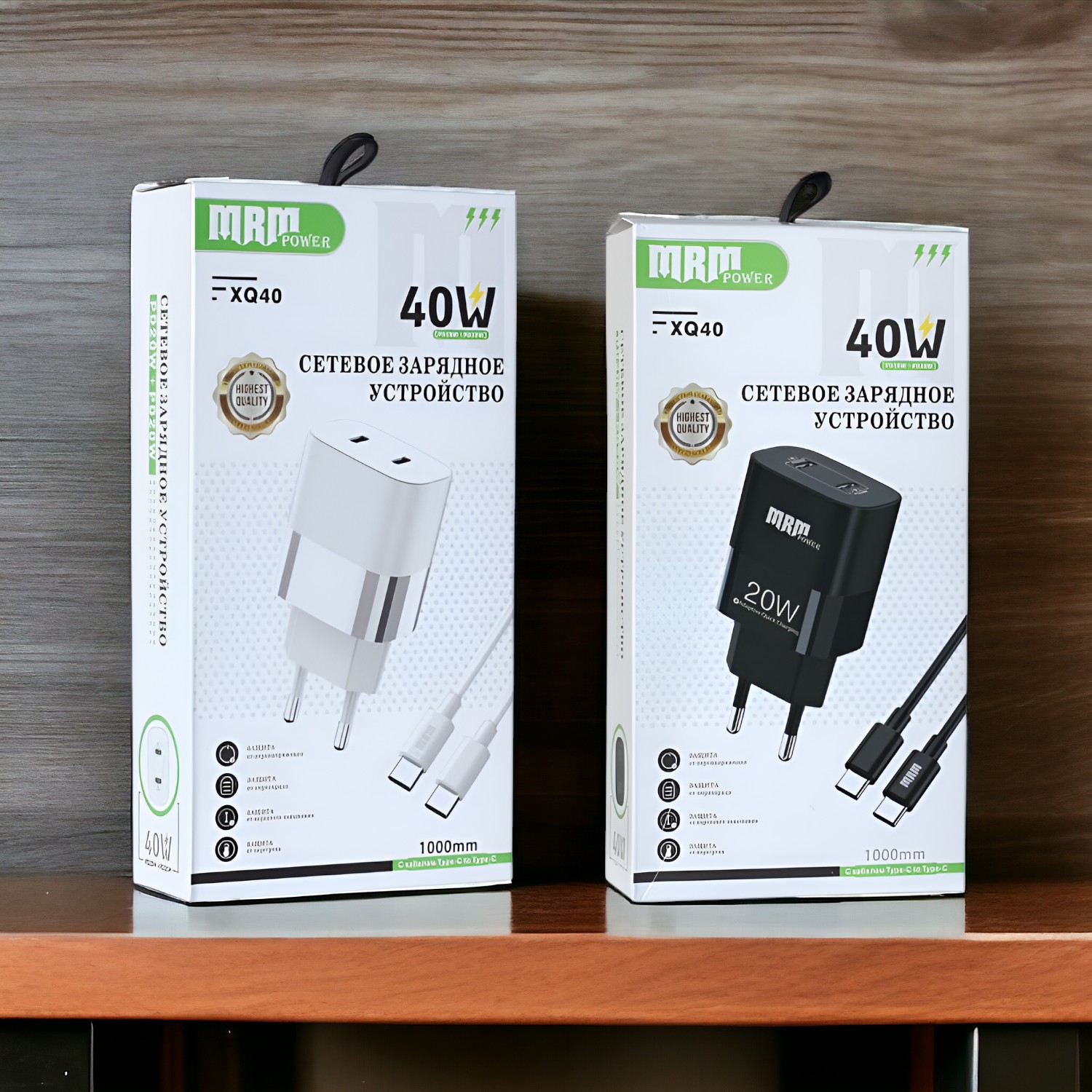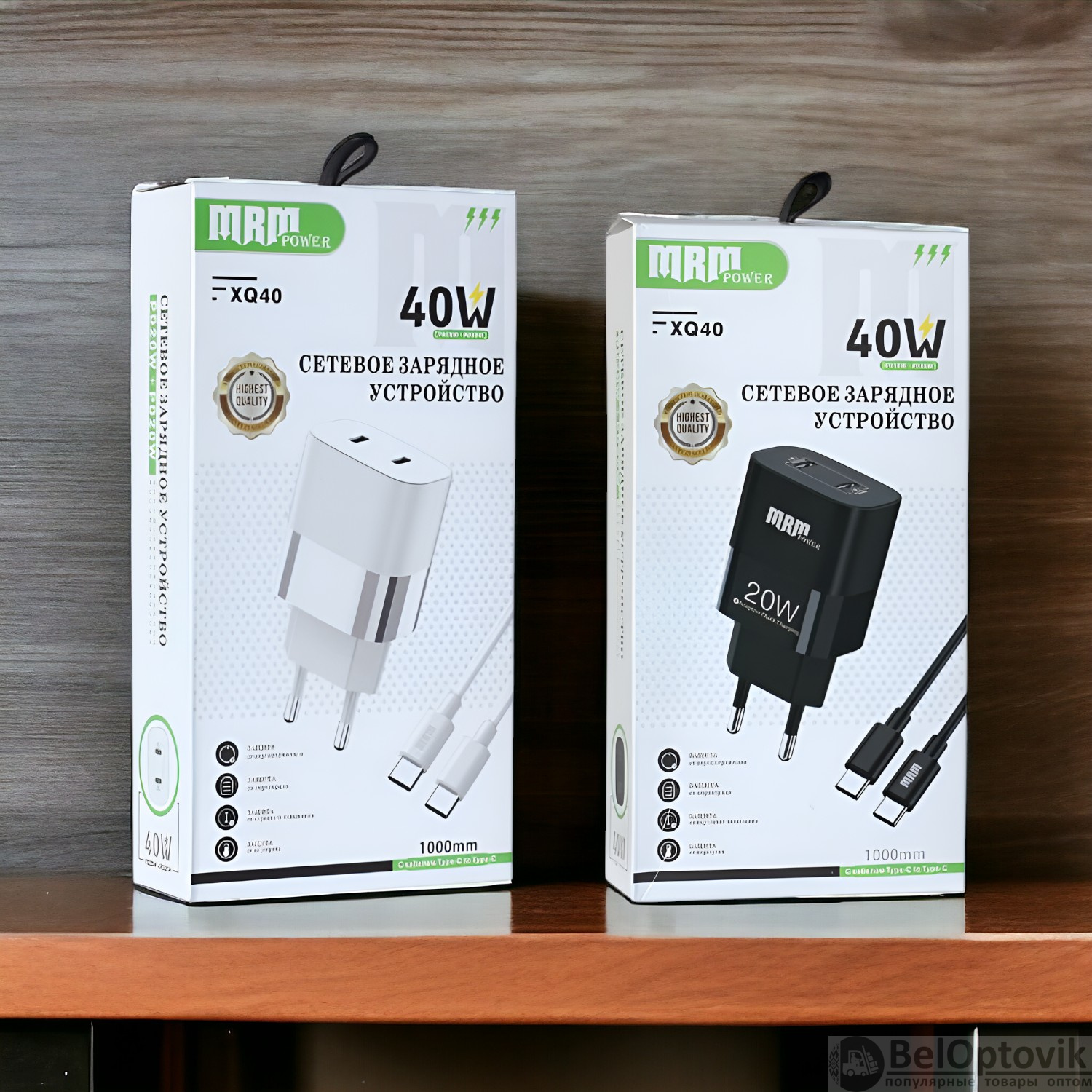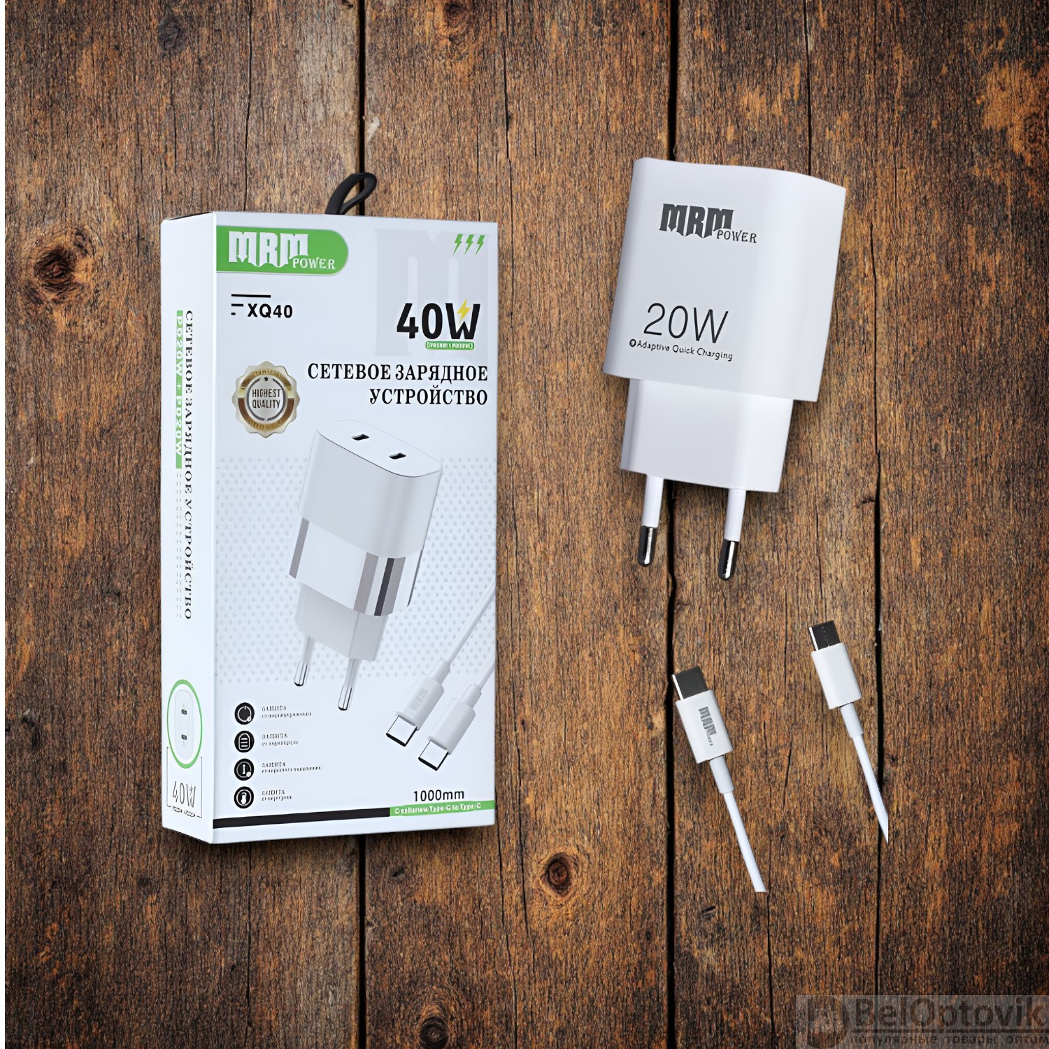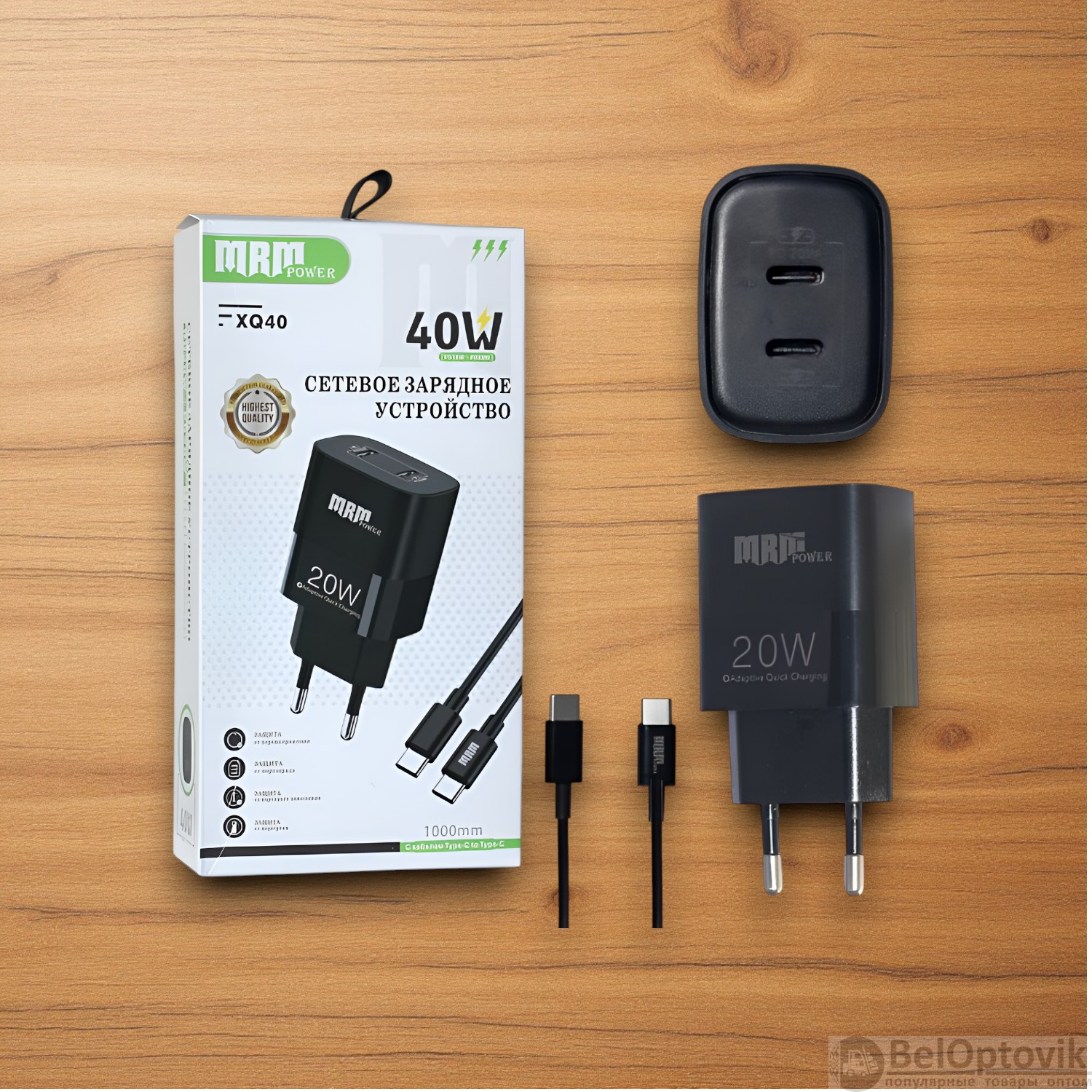 Почему купить Сетевое зарядное устройство MRM XQ40 PD 20W, с кабелем Type-C to Type-C 1м, черный и белый цвет оптом выгодно у нас: