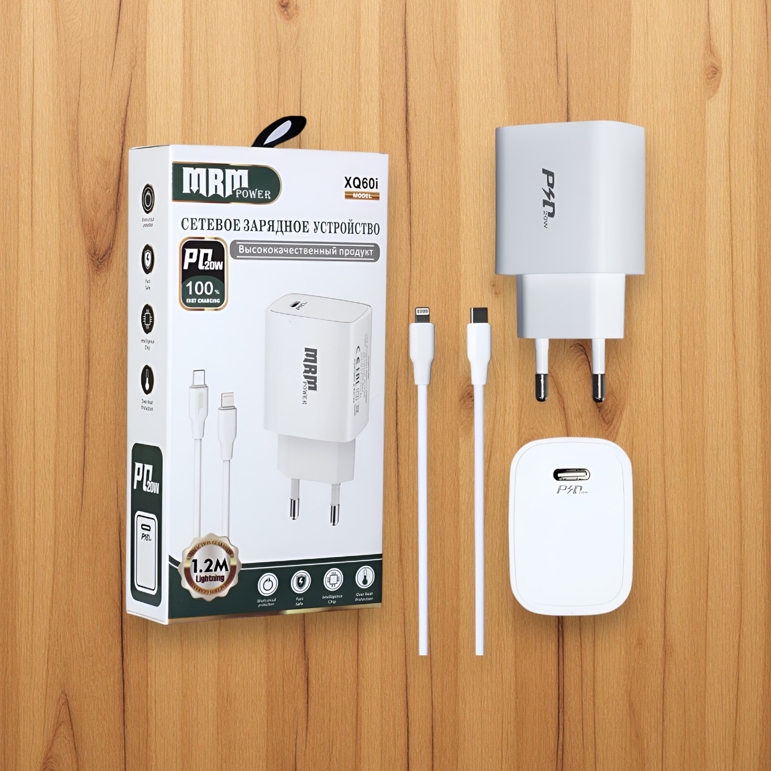 Благодаря поддержке технологии Power Delivery (PD) мощностью до 20 Вт, MRM XQ60 обеспечивает значительно более быструю зарядку по сравнению со стандартными адаптерами. В комплект входит кабель Type-C to Lightning длиной 1,2 метра, что обеспечивает удобное подключение и позволяет заряжать устройства на большем расстоянии от розетки.