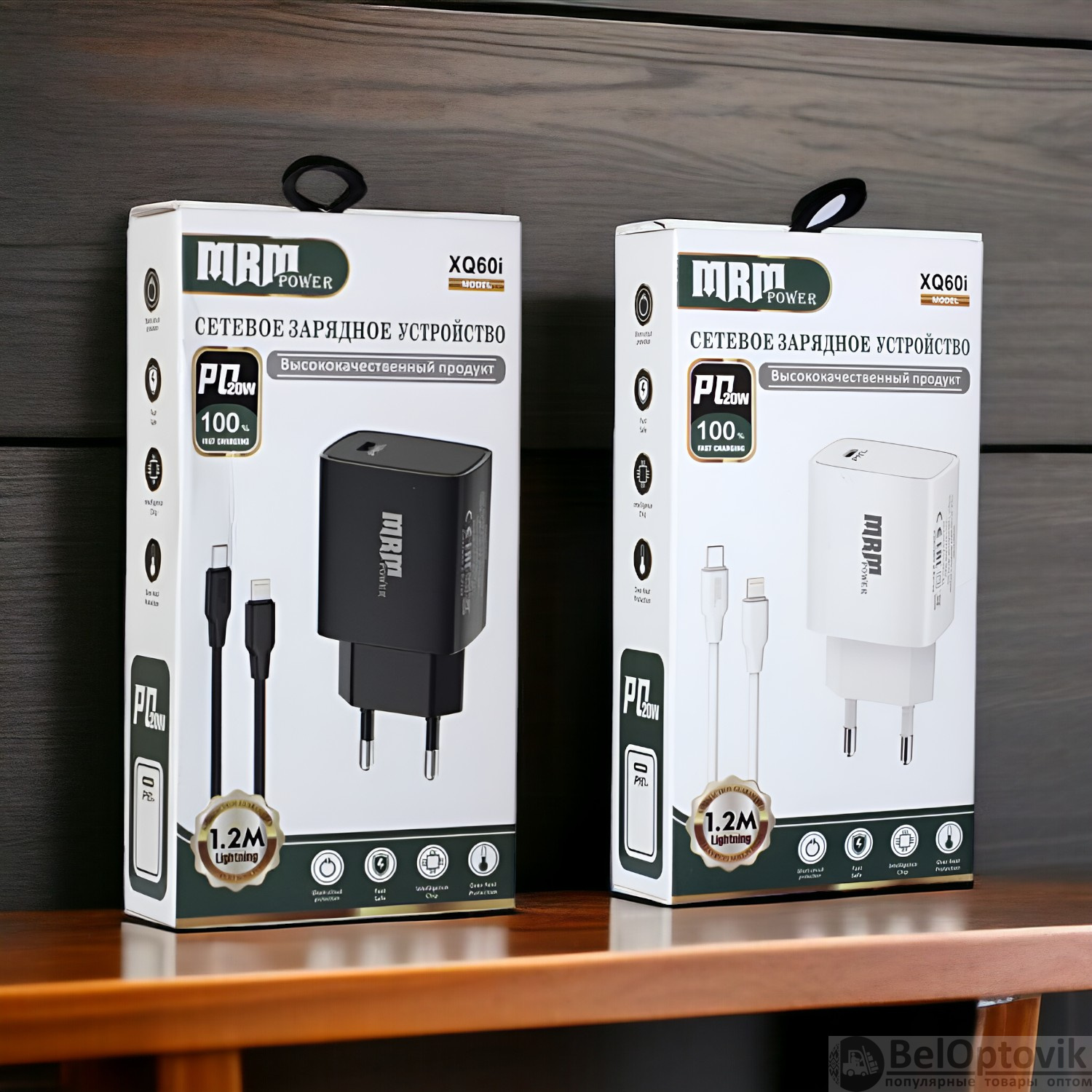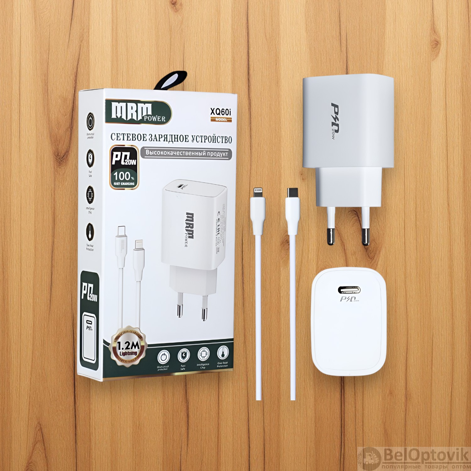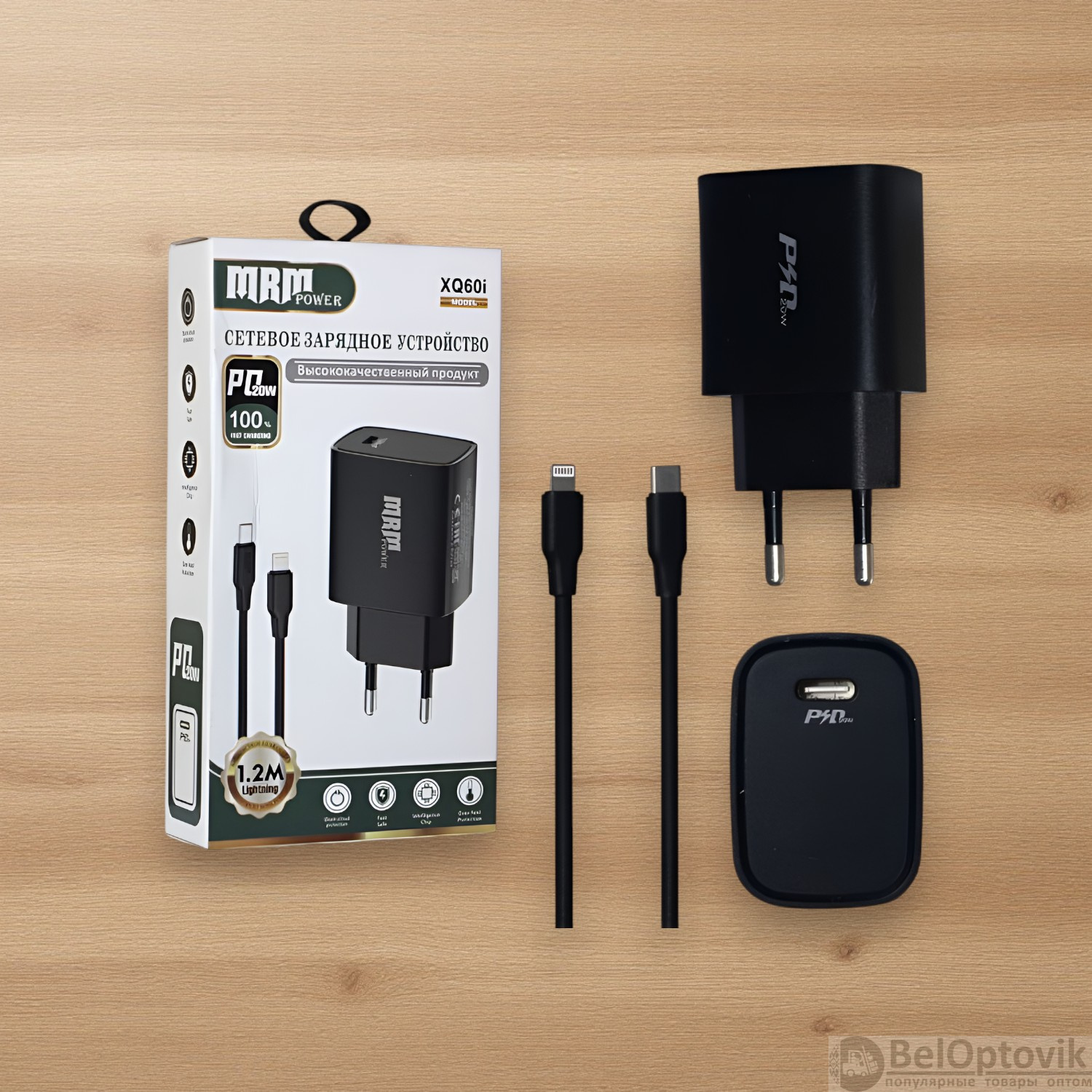 Почему купить Сетевое зарядное устройство MRM XQ60 PD 20W, с кабелем Type-C to Lightning 1,2м, черный и белый цвет оптом выгодно у нас: