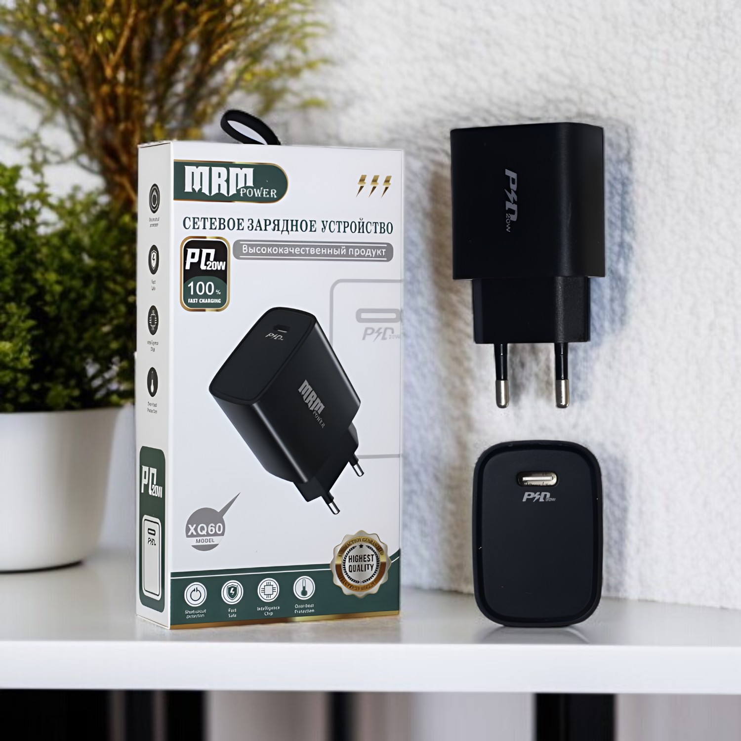 MRM XQ60 PD 20W оснащено разъемом Type-C, что позволяет подключать современные устройства с соответствующим портом. Высокое качество материалов и сборки гарантируют долгий срок службы и надежную работу. Это зарядное устройство станет отличным выбором для тех, кто ценит скорость, удобство и безопасность.