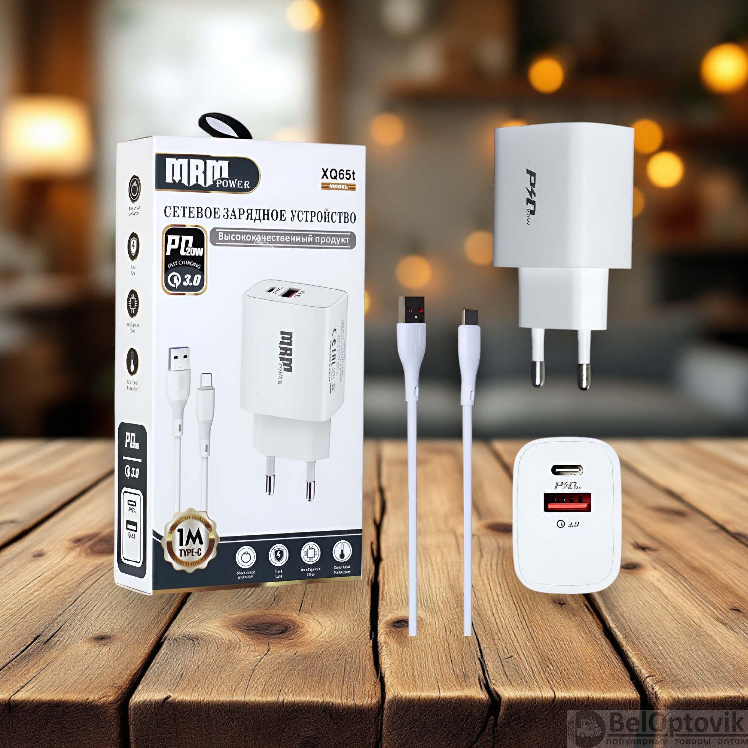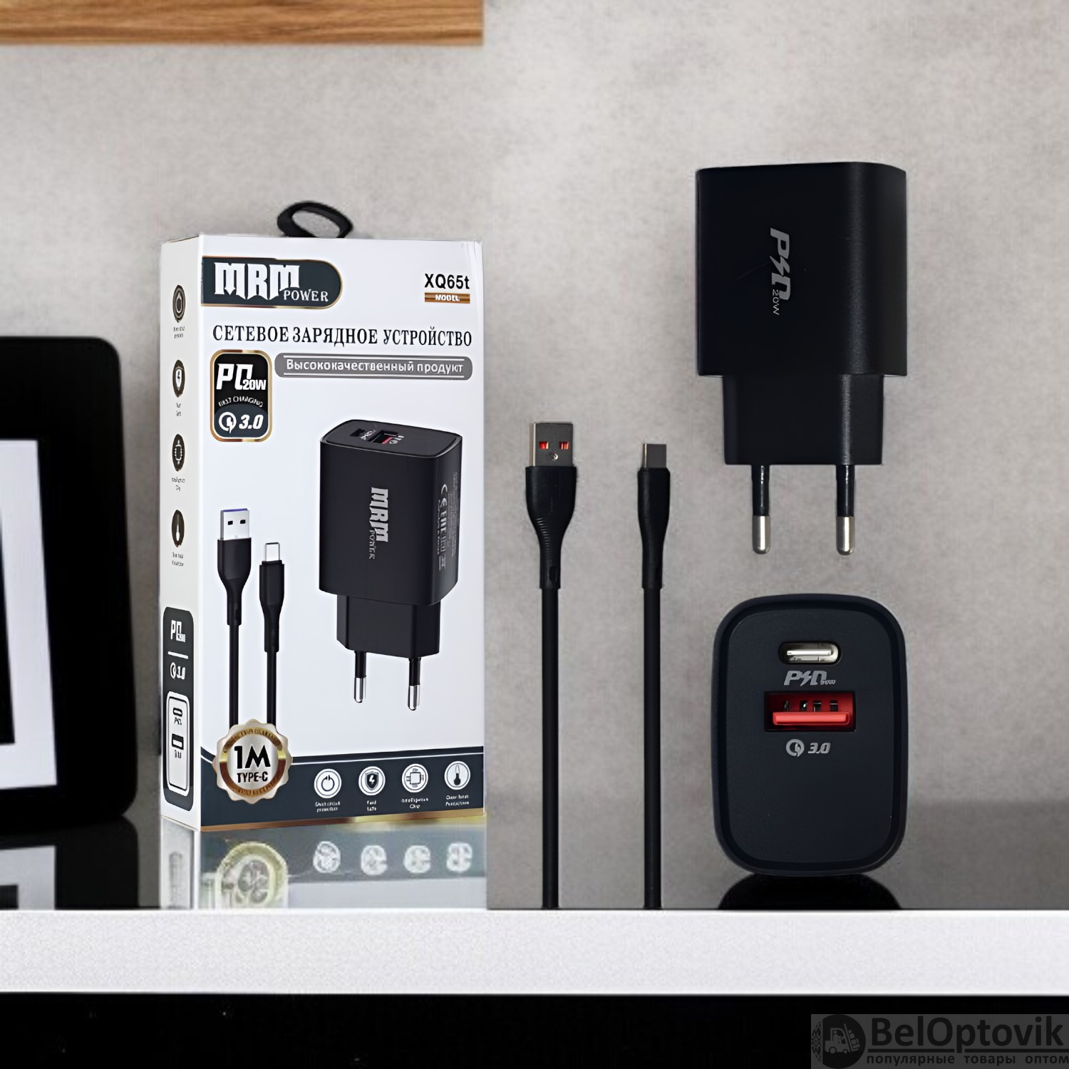 Почему купить Сетевое зарядное устройство MRM XQ65 PD20W + QC3.0 5V/3.1A, 1USB, с кабелем Type-C 1м, черный и белый цвет оптом выгодно у нас: