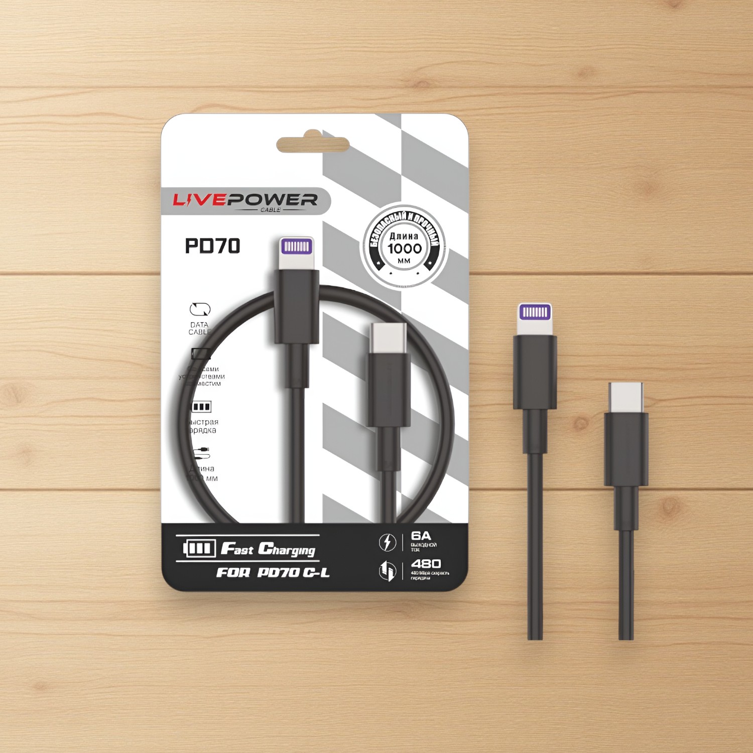 Кабель USB PD70 Type-C - Lightning идеально подходит для тех, кто ценит скорость, надежность и удобство в использовании. Он станет незаменимым аксессуаром для вашего iPhone или iPad, обеспечивая быструю и безопасную зарядку и передачу данных. Черный цвет кабеля придает ему стильный и современный вид, который гармонично сочетается с дизайном устройств Apple.