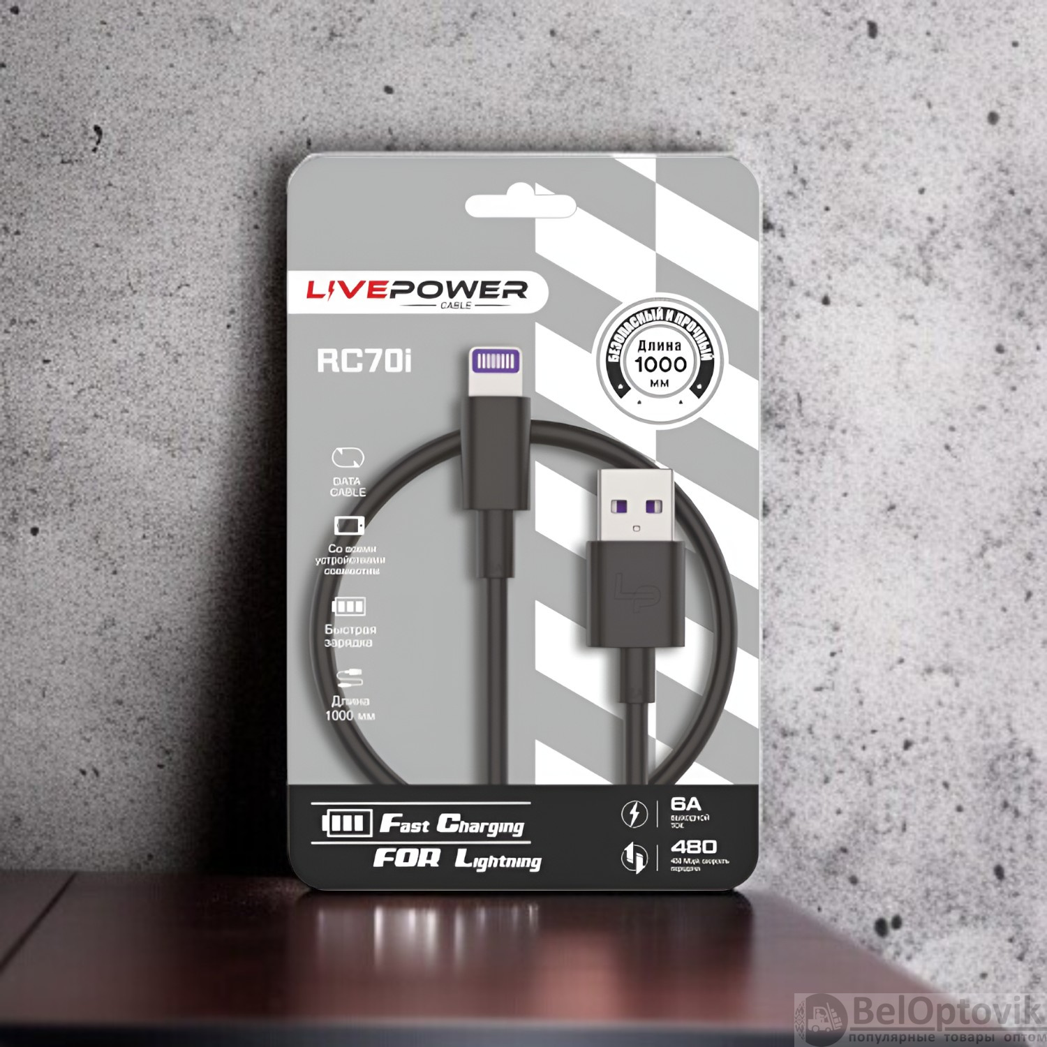 Купить Кабель USB RC70 Lightning, мощность 20W, ток 6А, 1000мм, черный на нашем сайте можно ОПТОМ от 20 шт. или меньше, если Вы покупаете у нас и другие товары (сборный заказ)