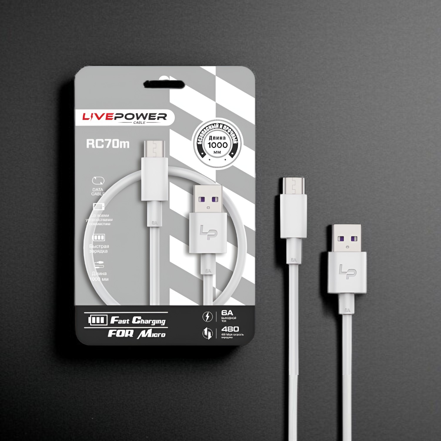 Кабель USB RC70 Micro — это надежный аксессуар для быстрой зарядки и передачи данных между устройствами с разъемами USB и Micro-USB. Он поддерживает мощность до 20 Вт и ток до 6А, что делает его идеальным для использования с современными смартфонами, планшетами и другими гаджетами.