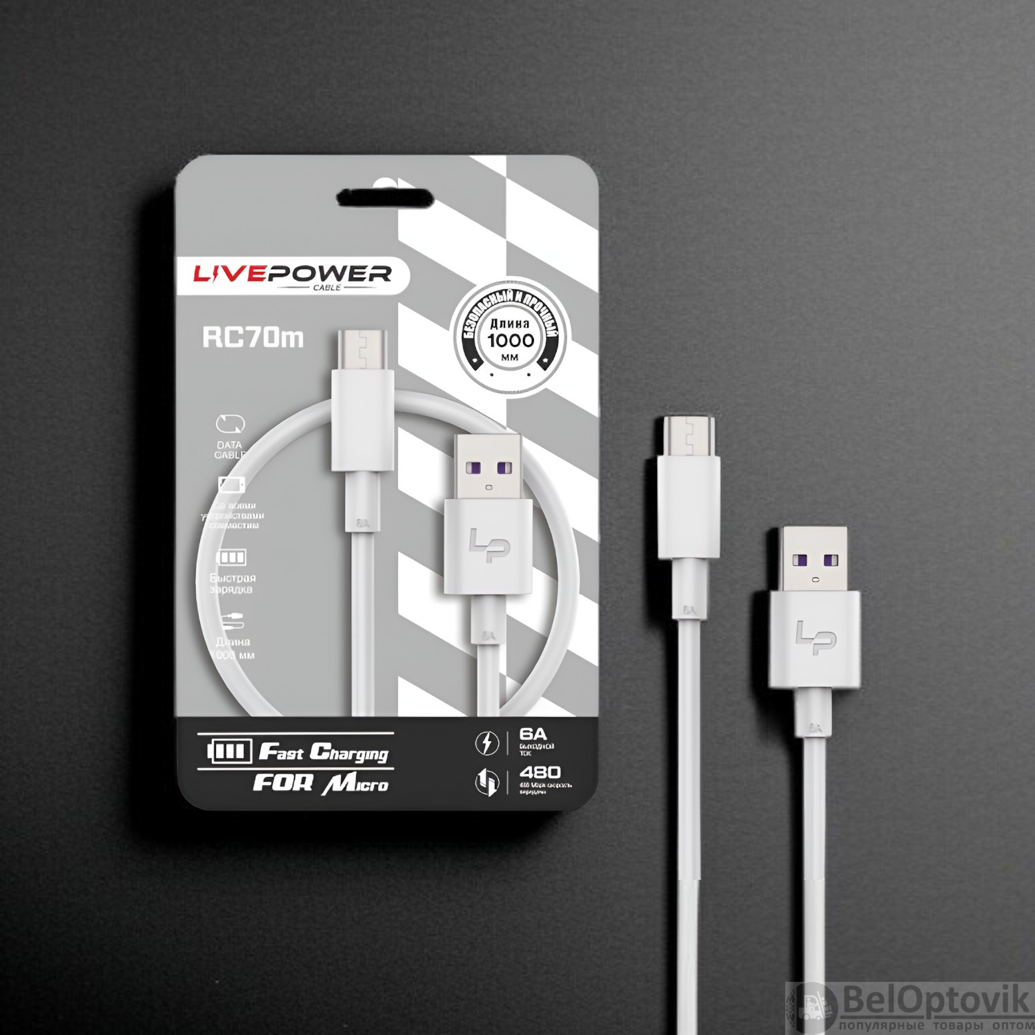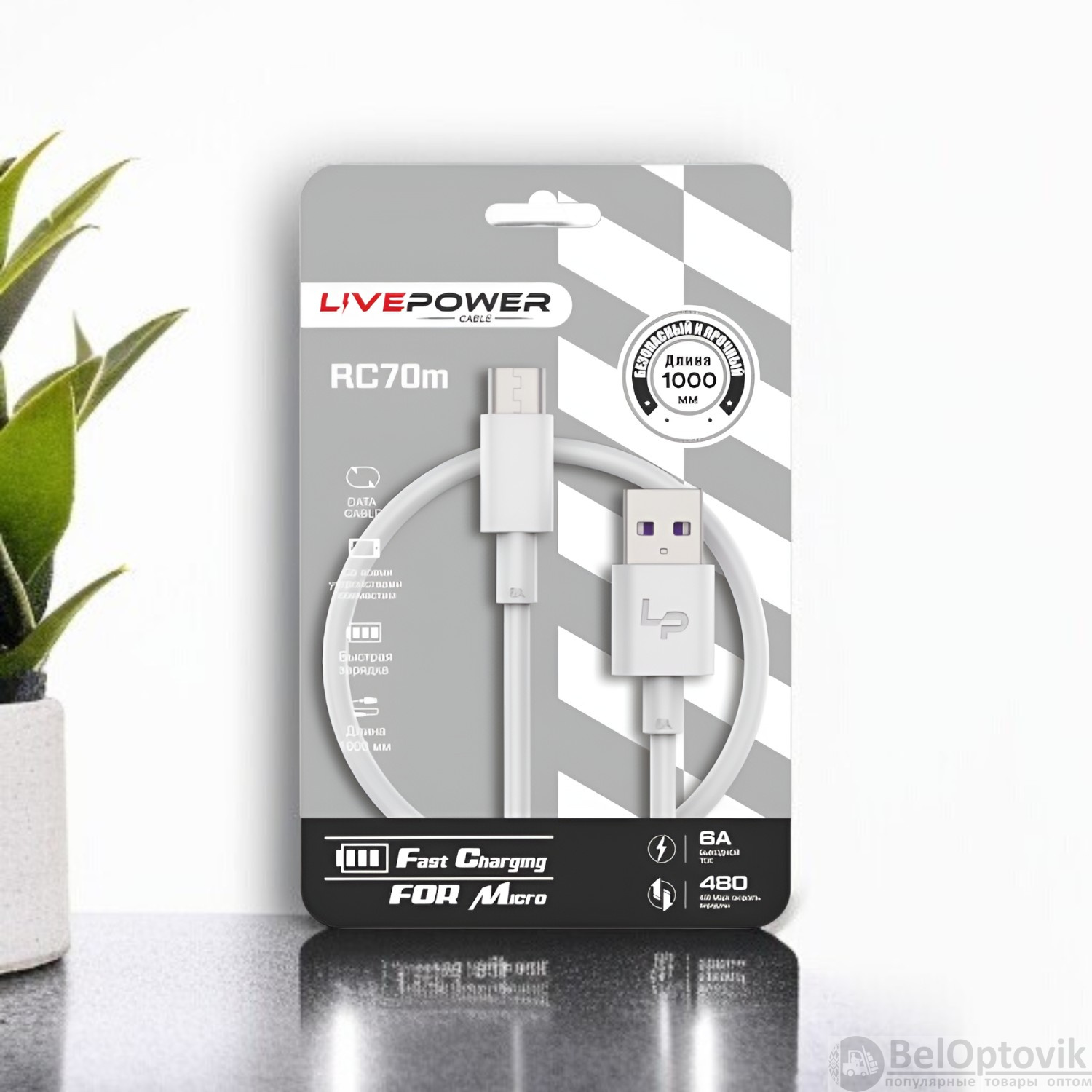 Почему купить Кабель USB RC70 Micro, мощность 20W, ток 6А, 1000мм, белый оптом выгодно у нас: