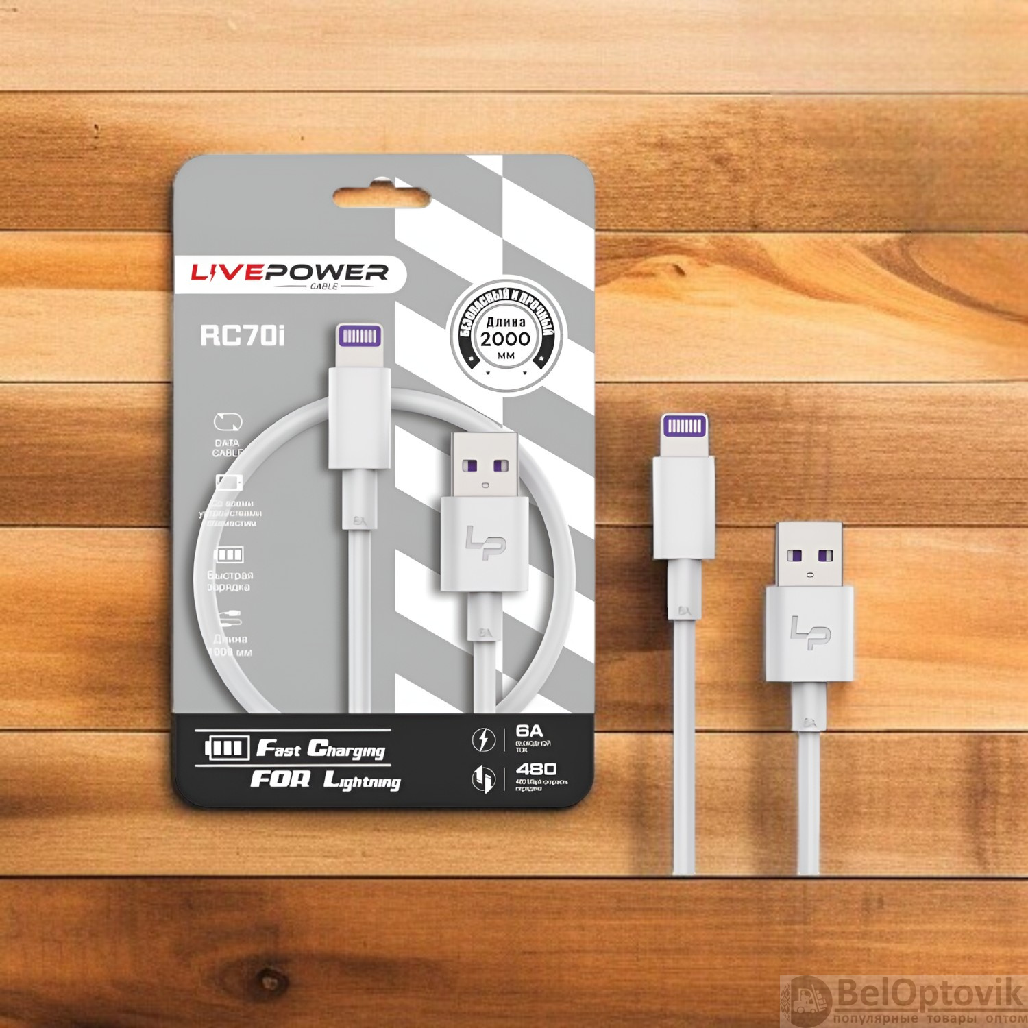 Купить Кабель USB RC70 Lightning, мощность 20W, ток 6А, 2000мм, белый на нашем сайте можно ОПТОМ от 20 шт. или меньше, если Вы покупаете у нас и другие товары (сборный заказ)
