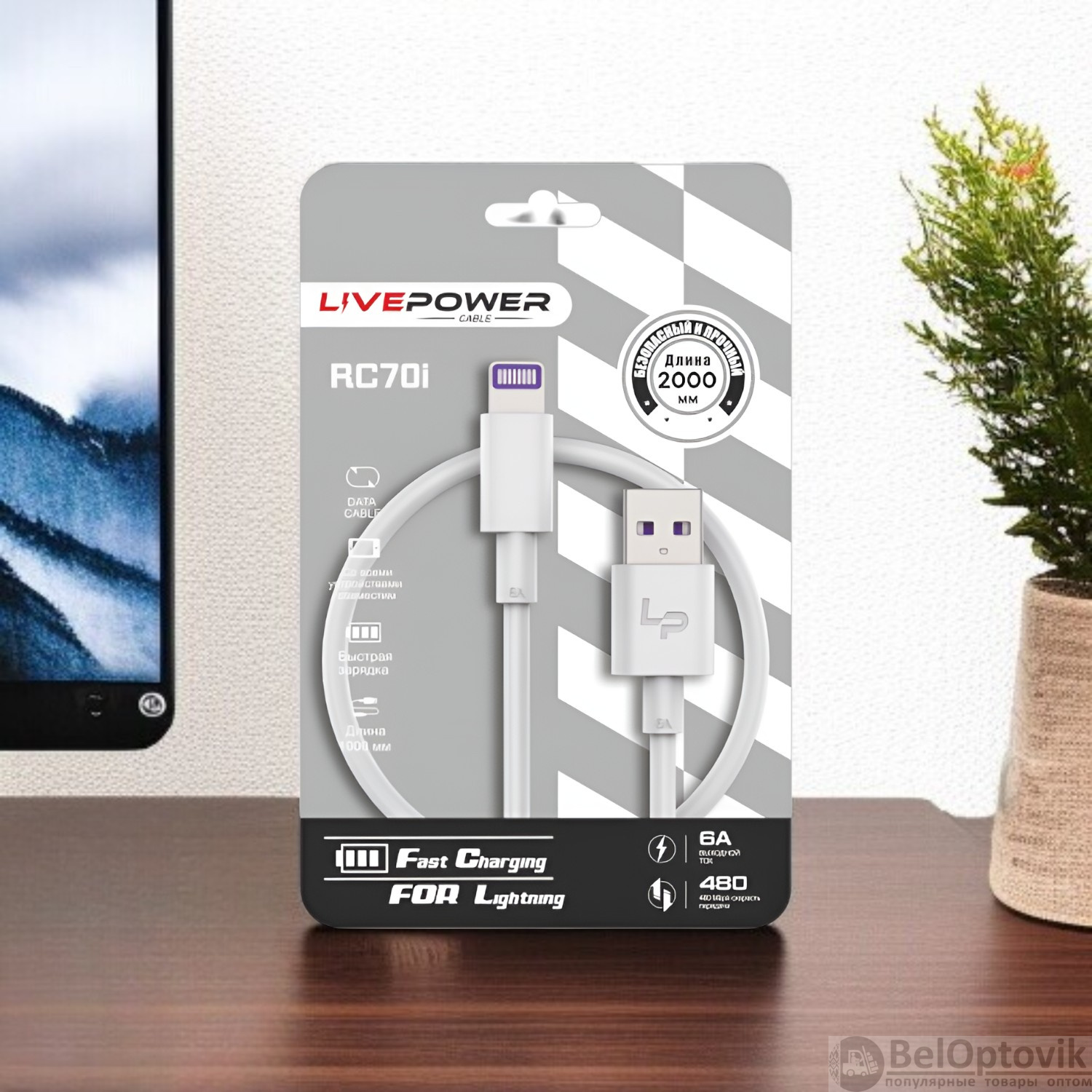 Почему купить Кабель USB RC70 Lightning, мощность 20W, ток 6А, 2000мм, белый оптом выгодно у нас: