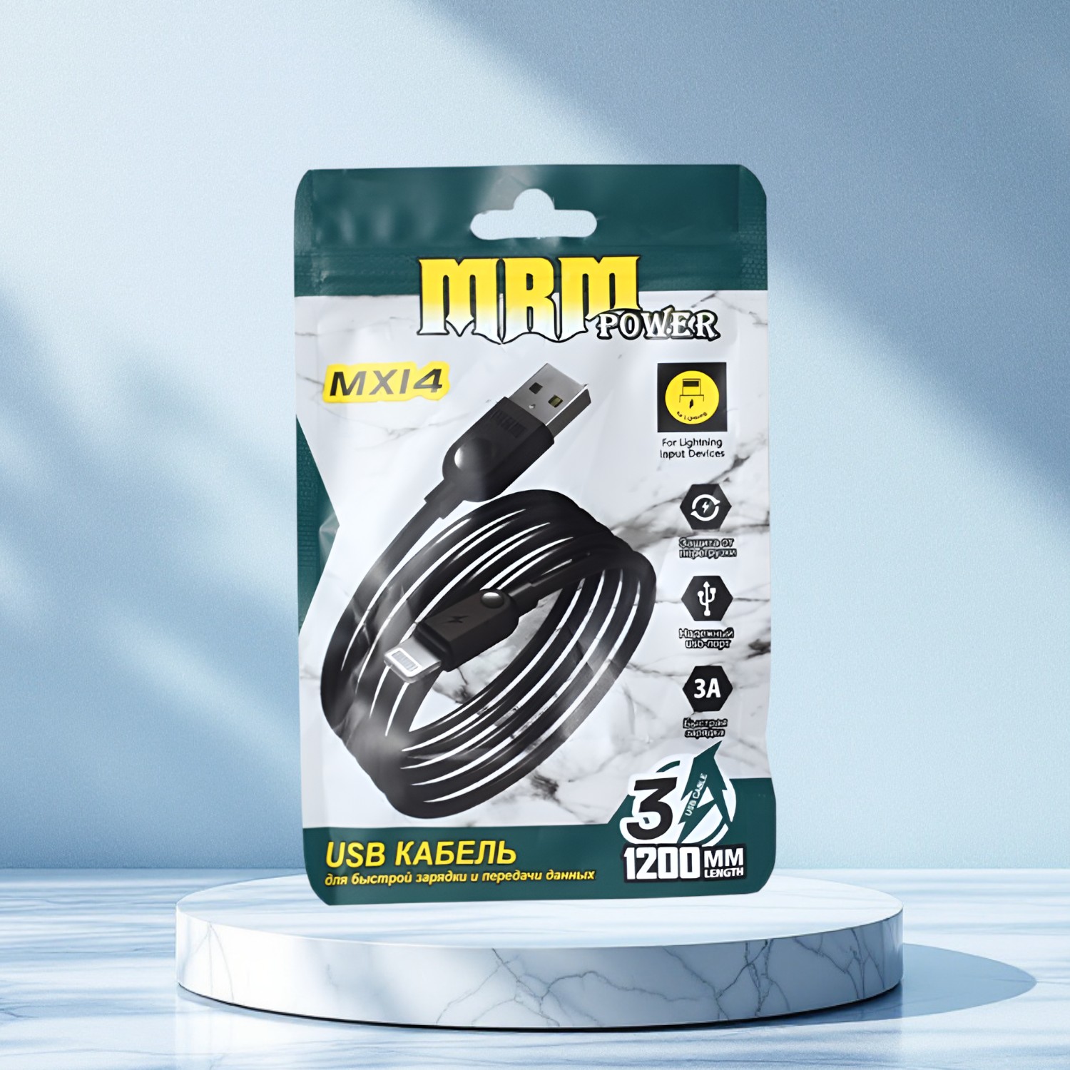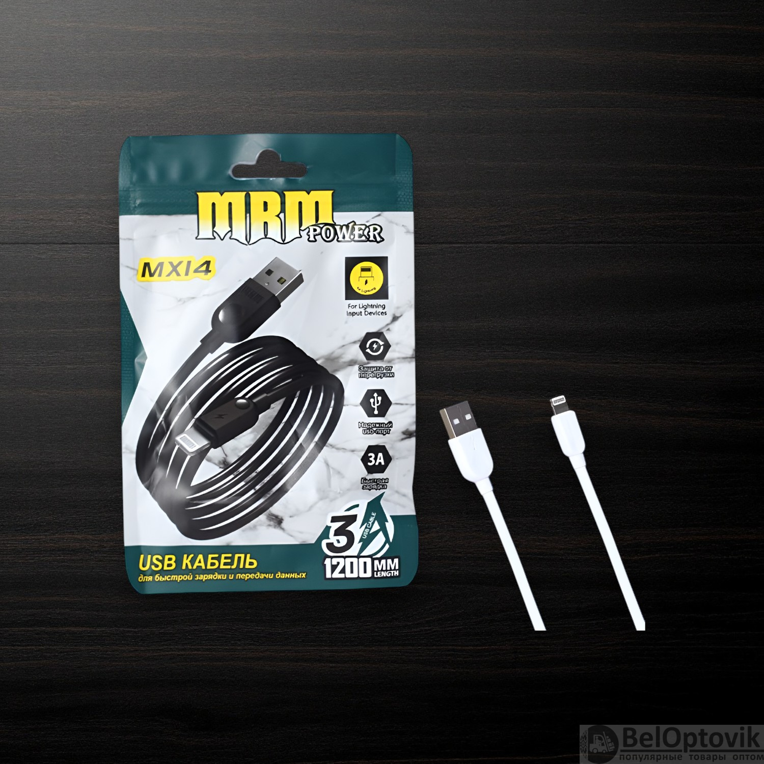 Купить Кабель USB MRM MX14 USB-Lightning, длина 1200мм, ток 3А, белый / Быстрая зарядка и передача данных с защитой от перенапряжений на нашем сайте можно ОПТОМ от 20 шт. или меньше, если Вы покупаете у нас и другие товары (сборный заказ)