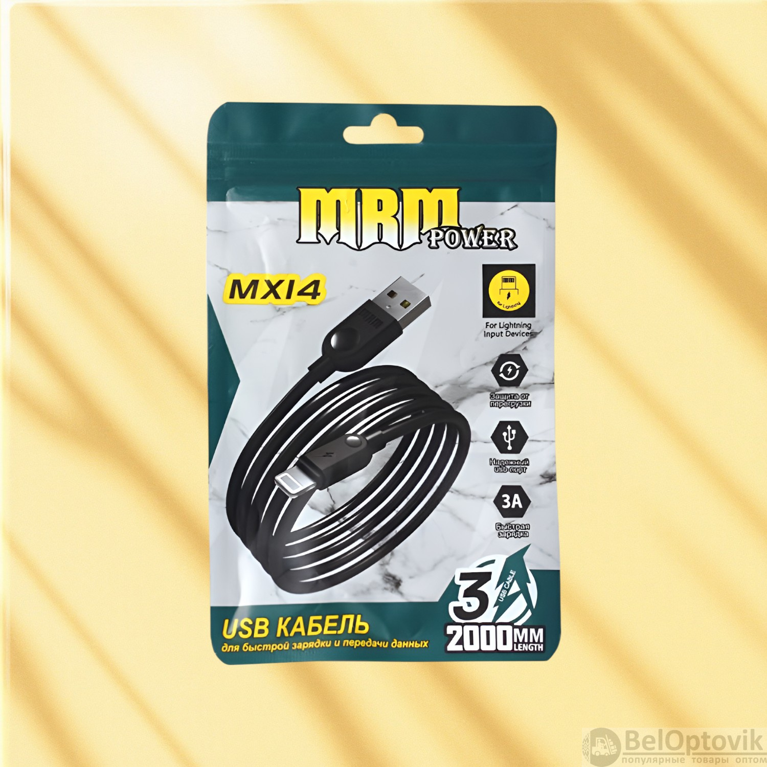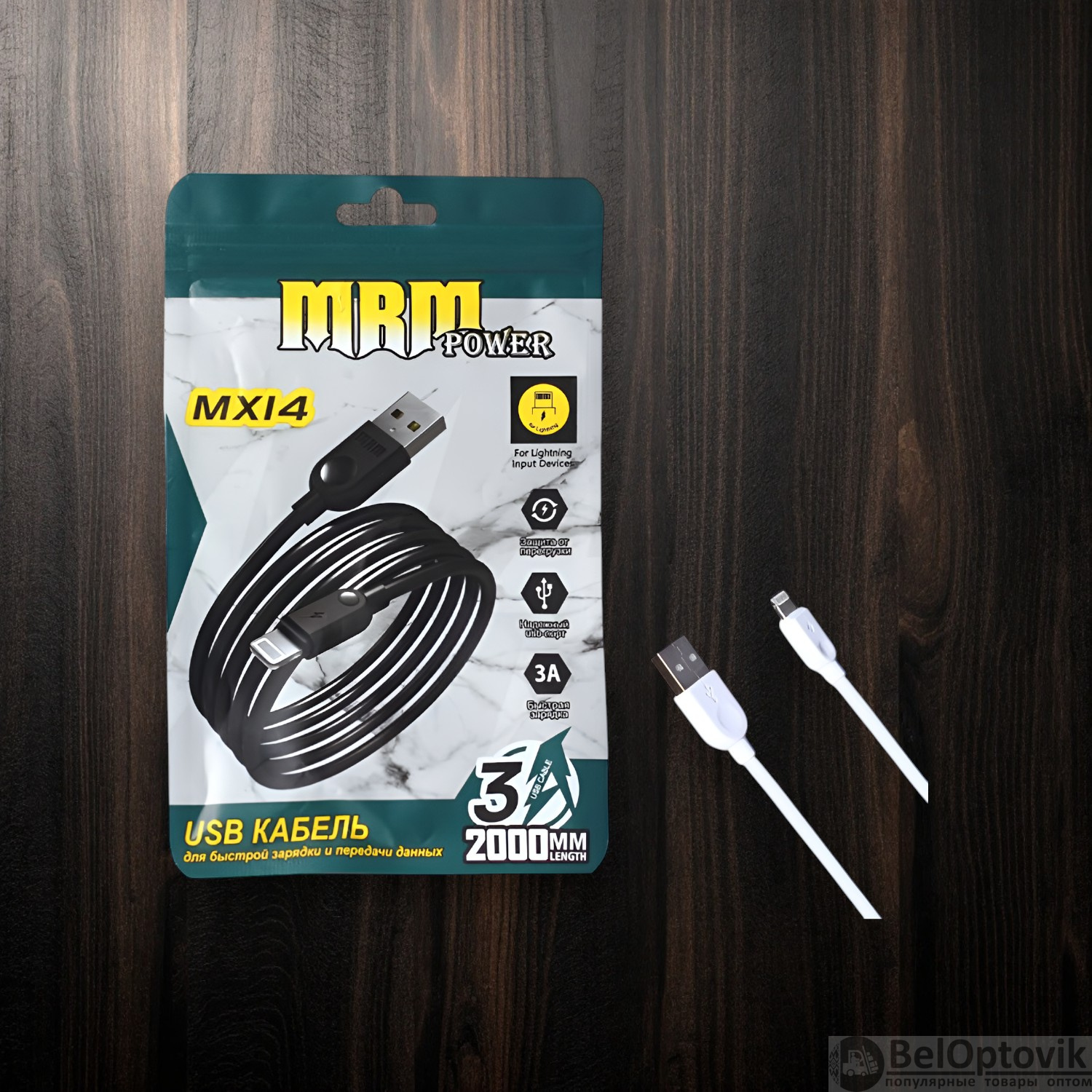 Почему купить Кабель USB MRM MX14 USB-Lightning, длина 2000мм, ток 3А, белый / Быстрая зарядка и передача данных оптом выгодно у нас: