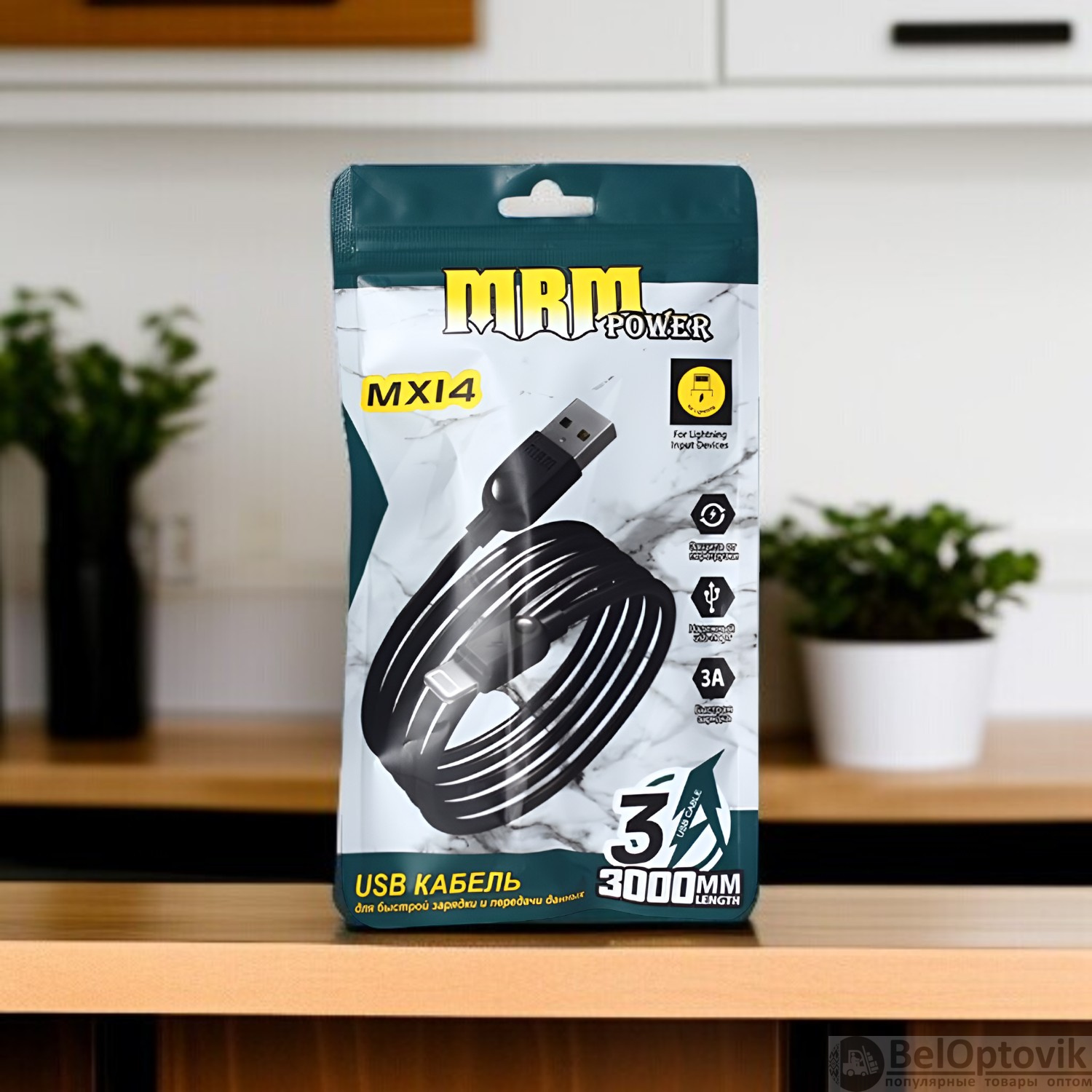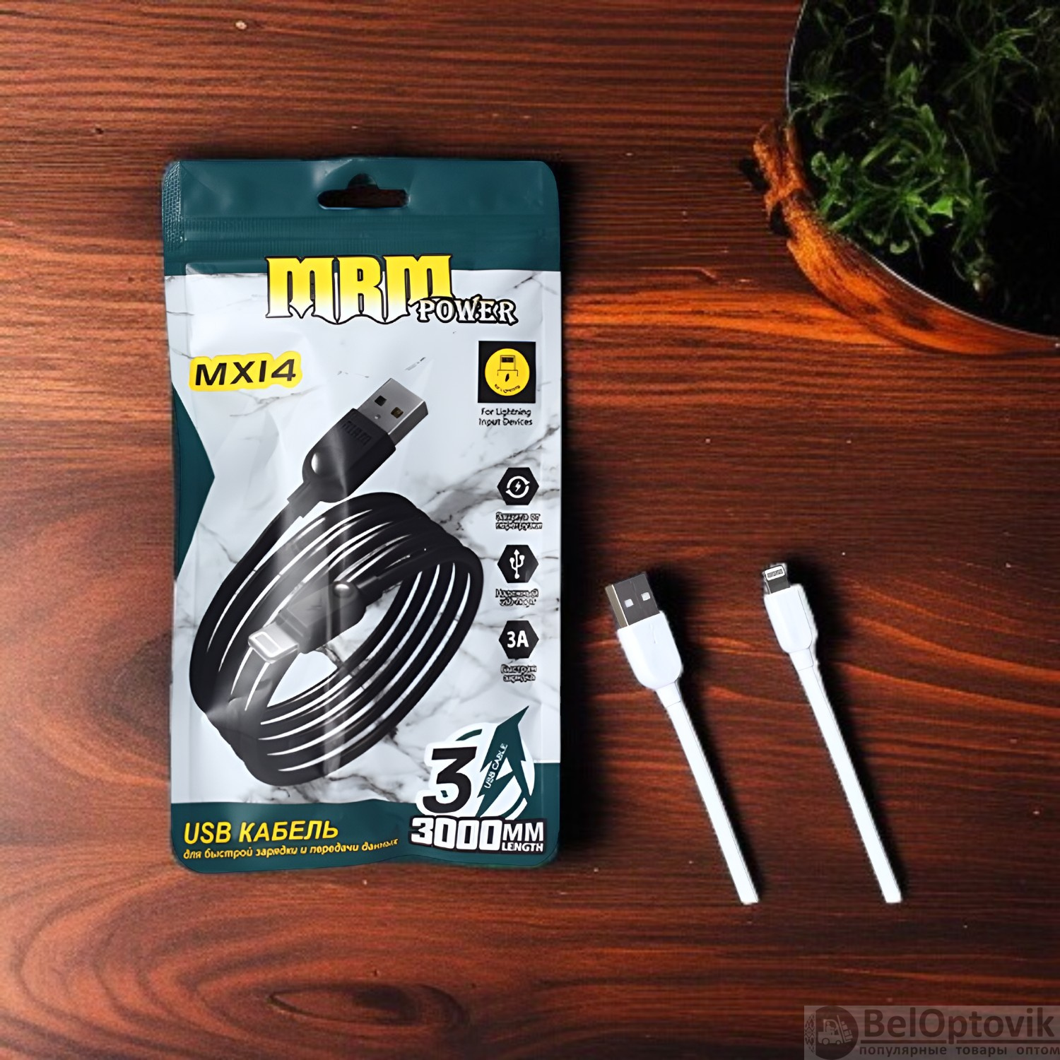 Почему купить Кабель USB MRM MX14 USB-Lightning, длина 3000мм, ток 3А, белый / Прочная конструкция и стабильная передача данных оптом выгодно у нас: