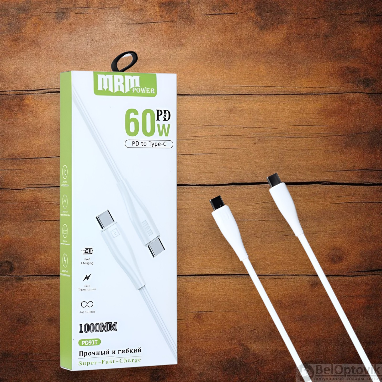 Купить Кабель USB MRM PD91T USB Type-C-C, длина 1000мм, ток 6А, мощность 60Вт, белый / Надежность и высокая скорость зарядки на нашем сайте можно ОПТОМ от 20 шт. или меньше, если Вы покупаете у нас и другие товары (сборный заказ)