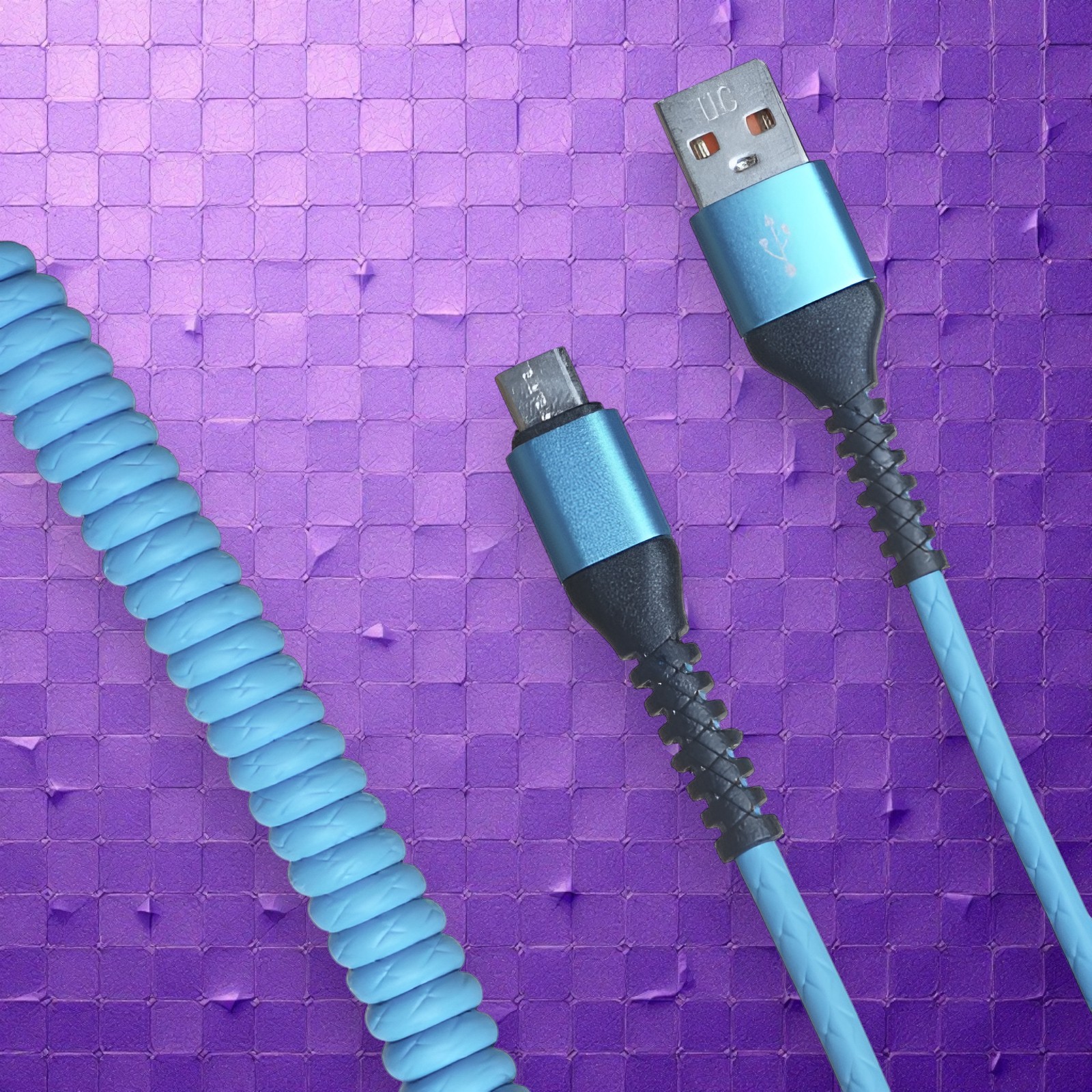 Кабель R22 USB Type-A - Micro с длиной 1200 мм в синем цвете — это стильный и практичный аксессуар для зарядки и передачи данных. Его витой (спиральный) дизайн делает его особенно удобным для повседневного использования, позволяя растягиваться при необходимости и компактно сворачиваться, когда он не нужен. Подходит для устройств с разъемом Micro USB, таких как смартфоны, планшеты и портативные гаджеты, обеспечивая надежное соединение и функциональность.