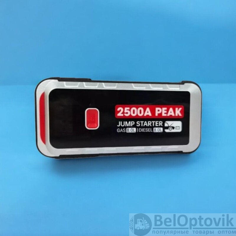 Высокий пиковый ток: Автомобильный аварийный стартер с пиковым током 2500A может запустить разряженный аккумулятор для дизельных автомобилей до 8,0л и бензиновых автомобилей до 8,0л.