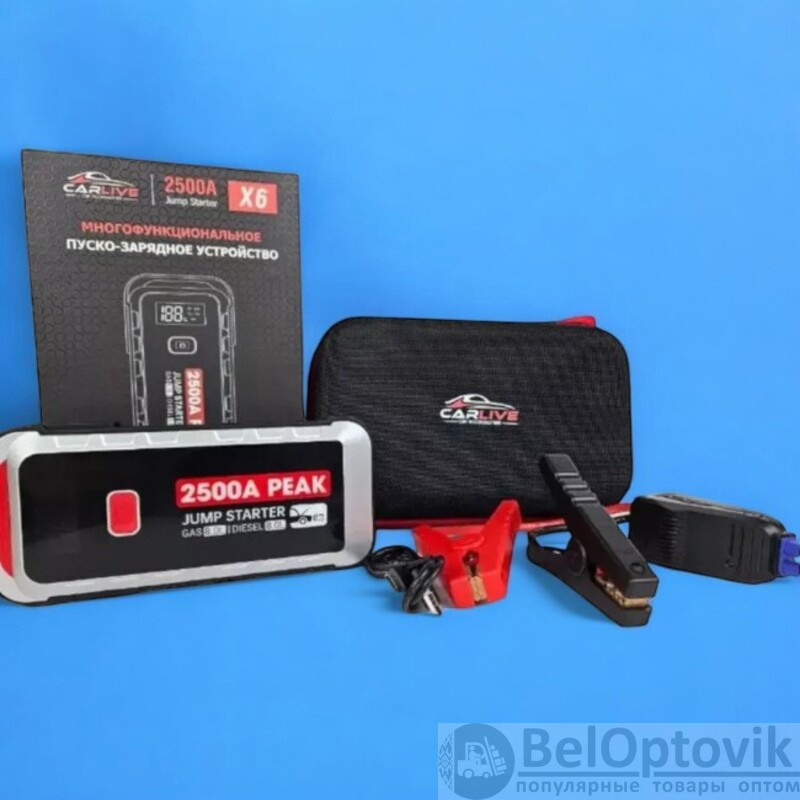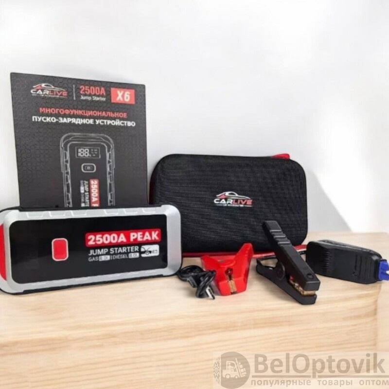 Пуско-зарядное устройство CarLive X6 - это компактное и многофункциональное устройство для запуска двигателя (12В), а также для зарядки мобильных устройств и ноутбуков.