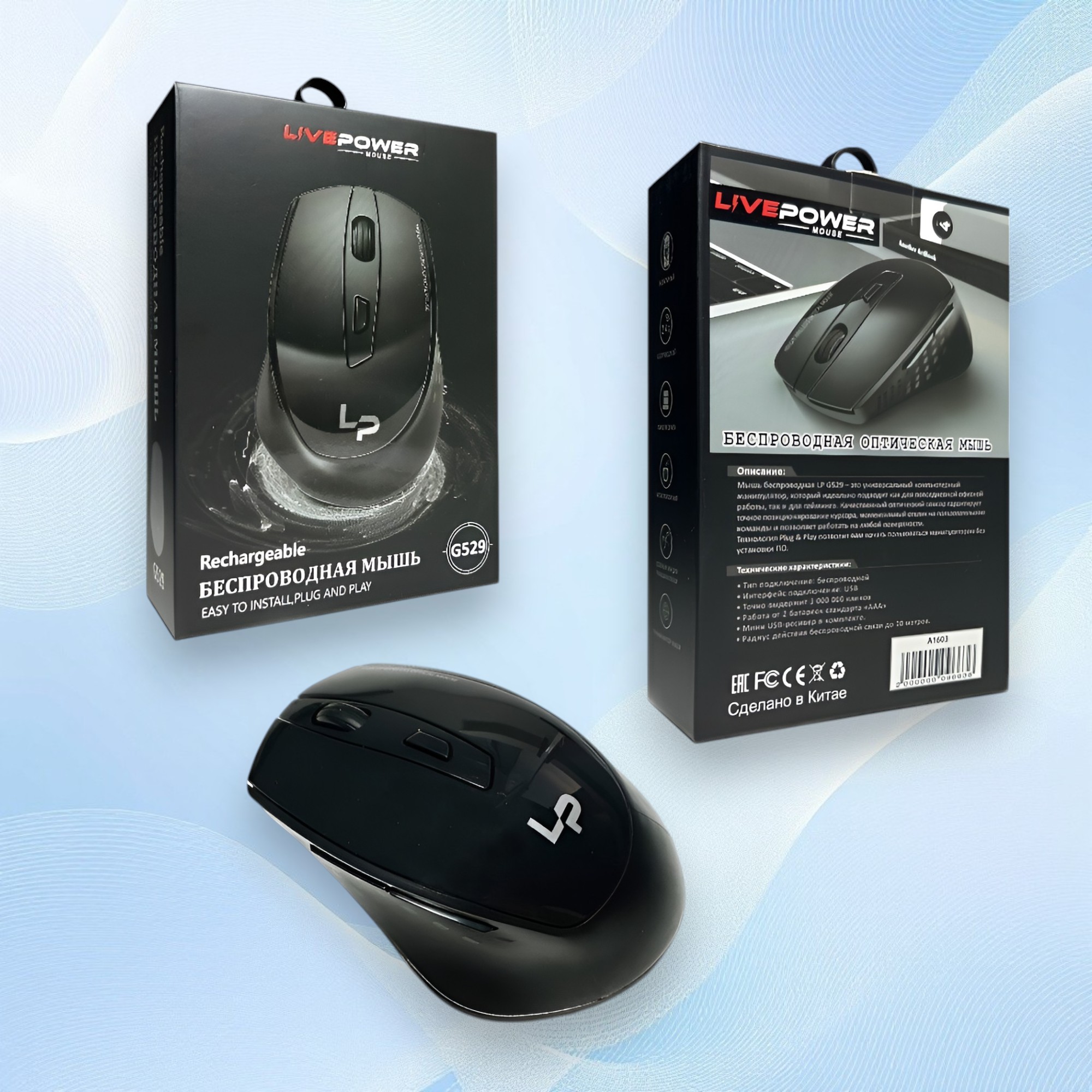 Купить Беспроводная мышь LP G529, до 10м, 1xAAA, USB, черный / Эргономика и надежность для вашего комфорта на нашем сайте можно ОПТОМ от 20 шт. или меньше, если Вы покупаете у нас и другие товары (сборный заказ)