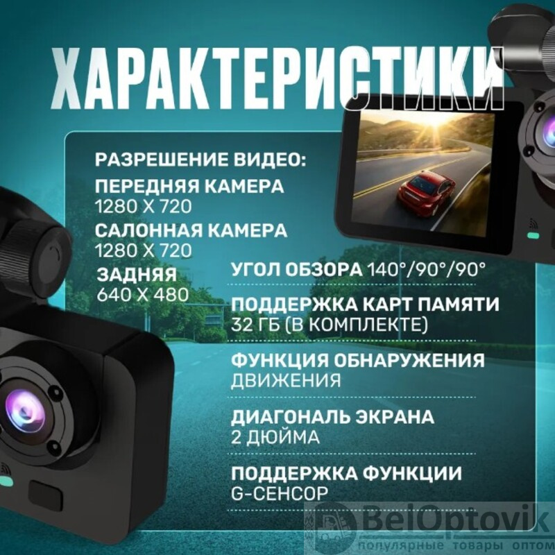 Широкий обзор: Три камеры создают полный обзор вокруг автомобиля, позволяя фиксировать важные детали с разных ракурсов.