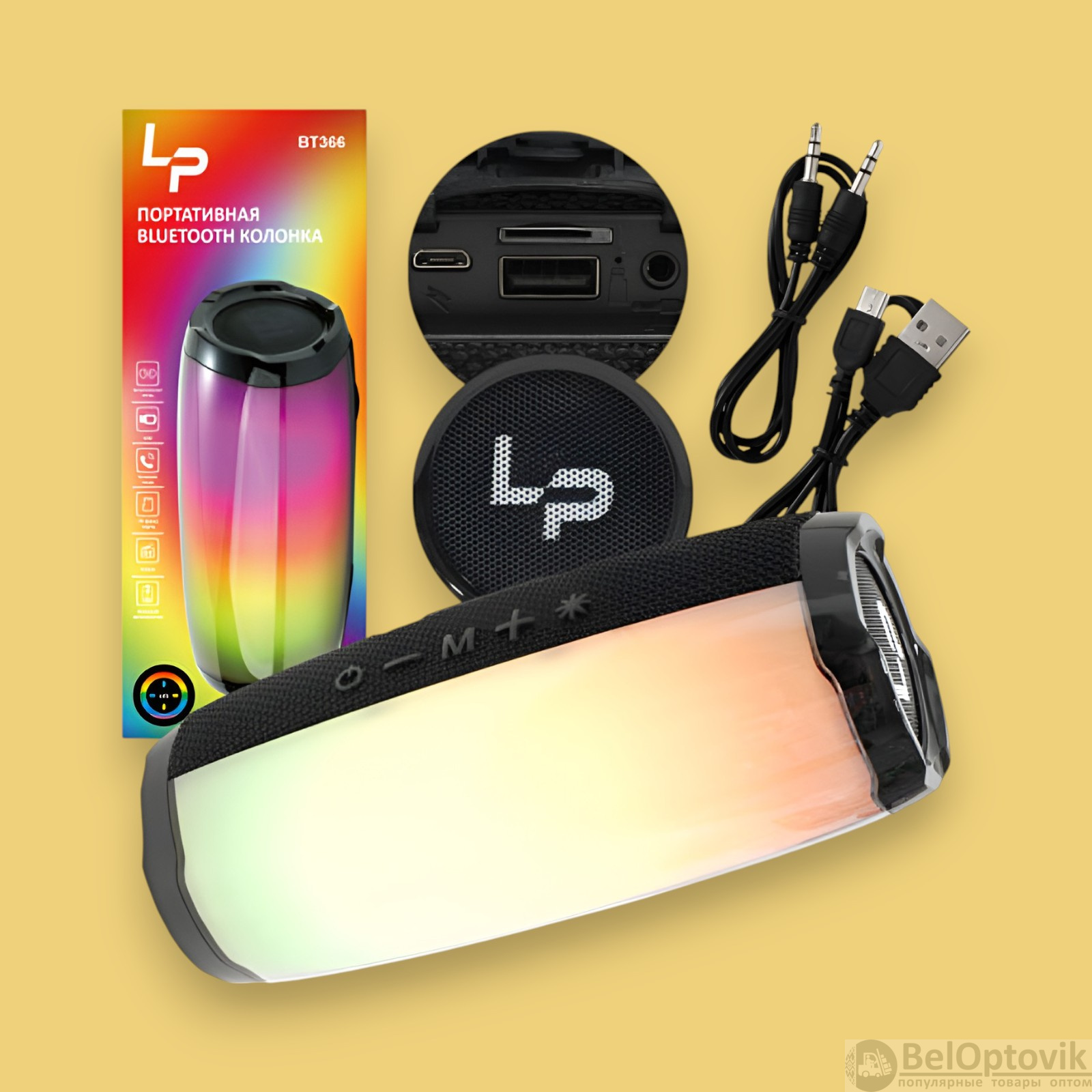 Купить Портативная колонка LP BT366, Bluetooth, TF/USB/3,5 мм jack, RGB-подсветка, черный / Яркий звук и свет для любого настроения на нашем сайте можно ОПТОМ от 20 шт. или меньше, если Вы покупаете у нас и другие товары (сборный заказ)