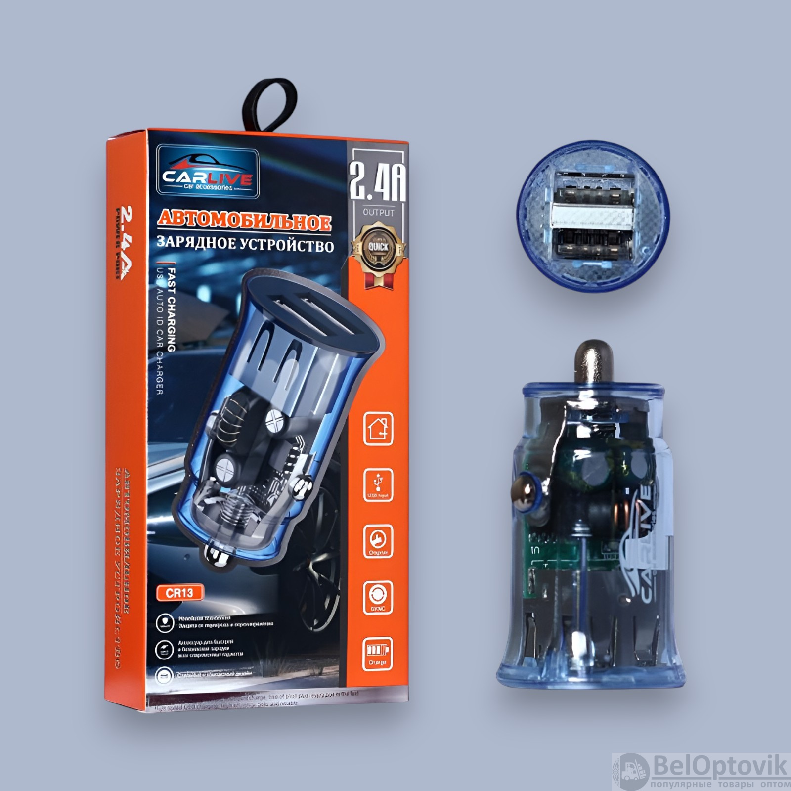 Купить Автомобильное зарядное устройство Carlive CR13, выходной ток 5V/2.4A, 2 USB-порта, мощность 12 Вт, синий / Быстрая зарядка в дороге для двух устройств одновременно на нашем сайте можно ОПТОМ от 20 шт. или меньше, если Вы покупаете у нас и другие товары (сборный заказ)