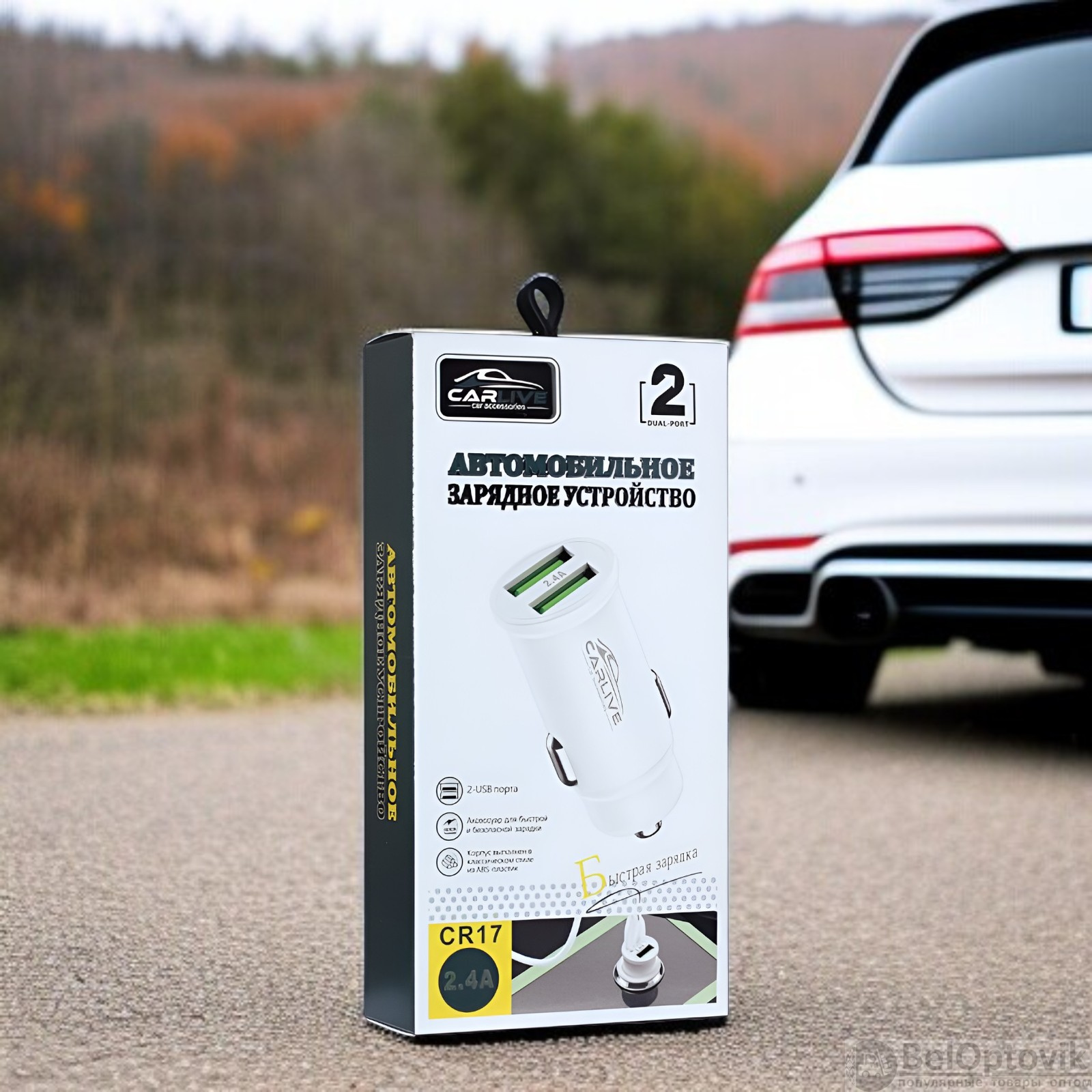 Купить Автомобильное зарядное устройство, выходной ток 5V/2.4A, 2 USB-порта, мощность 12 Вт, белый / Компактная зарядка для двух гаджетов в пути на нашем сайте можно ОПТОМ от 20 шт. или меньше, если Вы покупаете у нас и другие товары (сборный заказ)