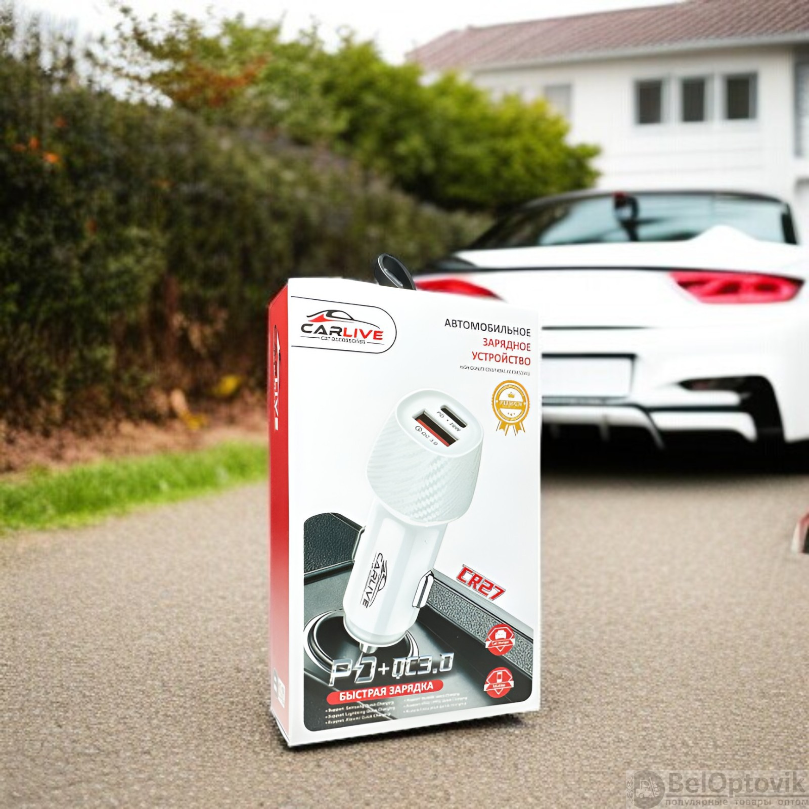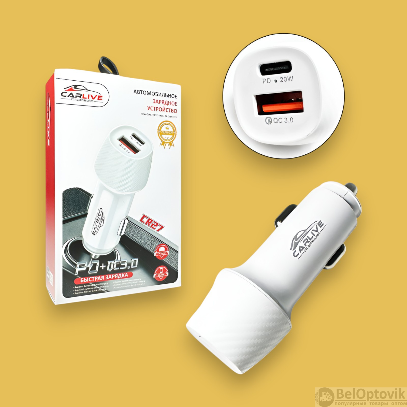 Почему купить Автомобильное зарядное устройство Carlive CR27, QC3.0 18W, PD 20W, 2 порта (USB + Type-C), мощность 38 Вт, белый / Мощная зарядка с двойной технологией оптом выгодно у нас: