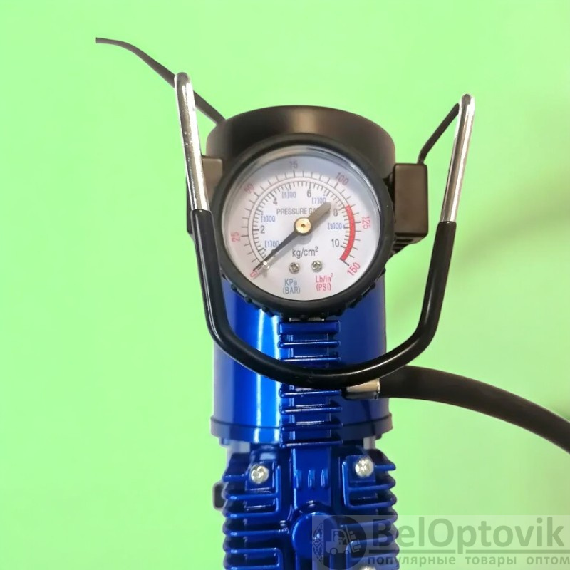 Контроль давления: Оснащён встроенным манометром, который позволяет точно контролировать давление для правильной накачки шин.