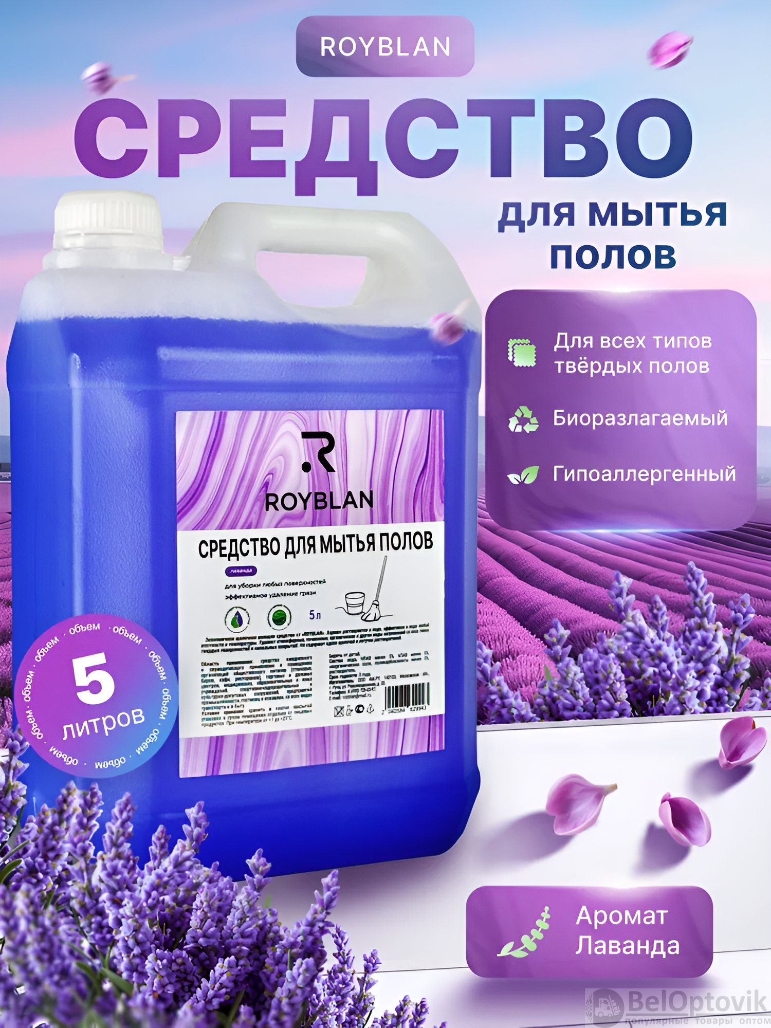 Почему купить Средство для мытья полов Royblan, 5 л, ароматы лаванды и альпийской свежести, ПНД / Свежая чистота для вашего дома оптом выгодно у нас: