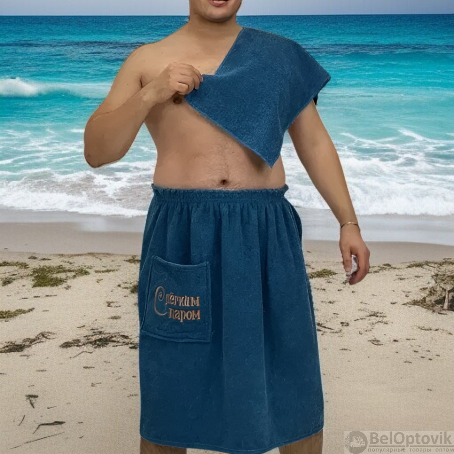 Почему купить Килт мужской для сауны Crystal Textile, 100% хлопок, высокое качество, размер 65x150 см с липучкой, голубой / Удобство и стиль в каждой детали оптом выгодно у нас: