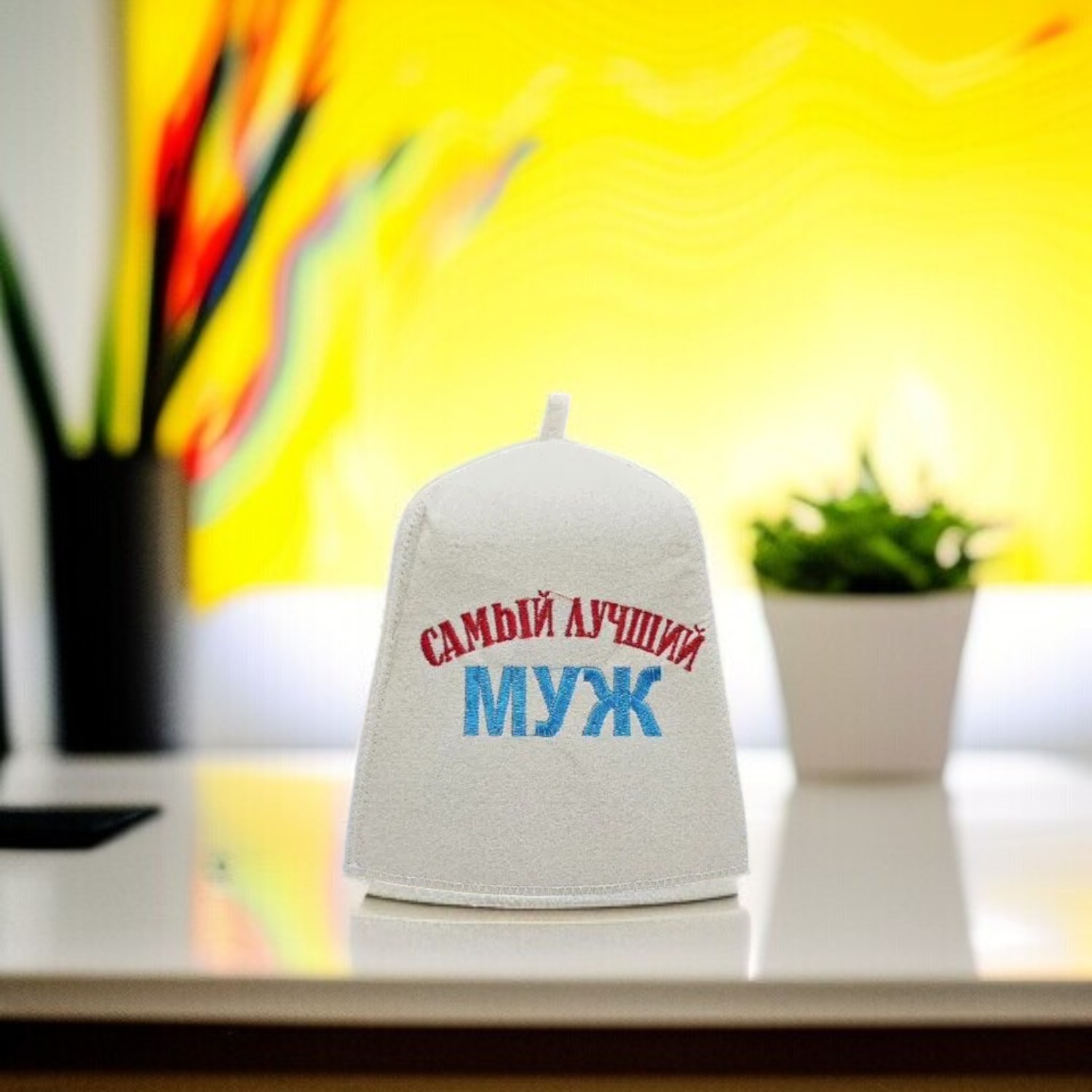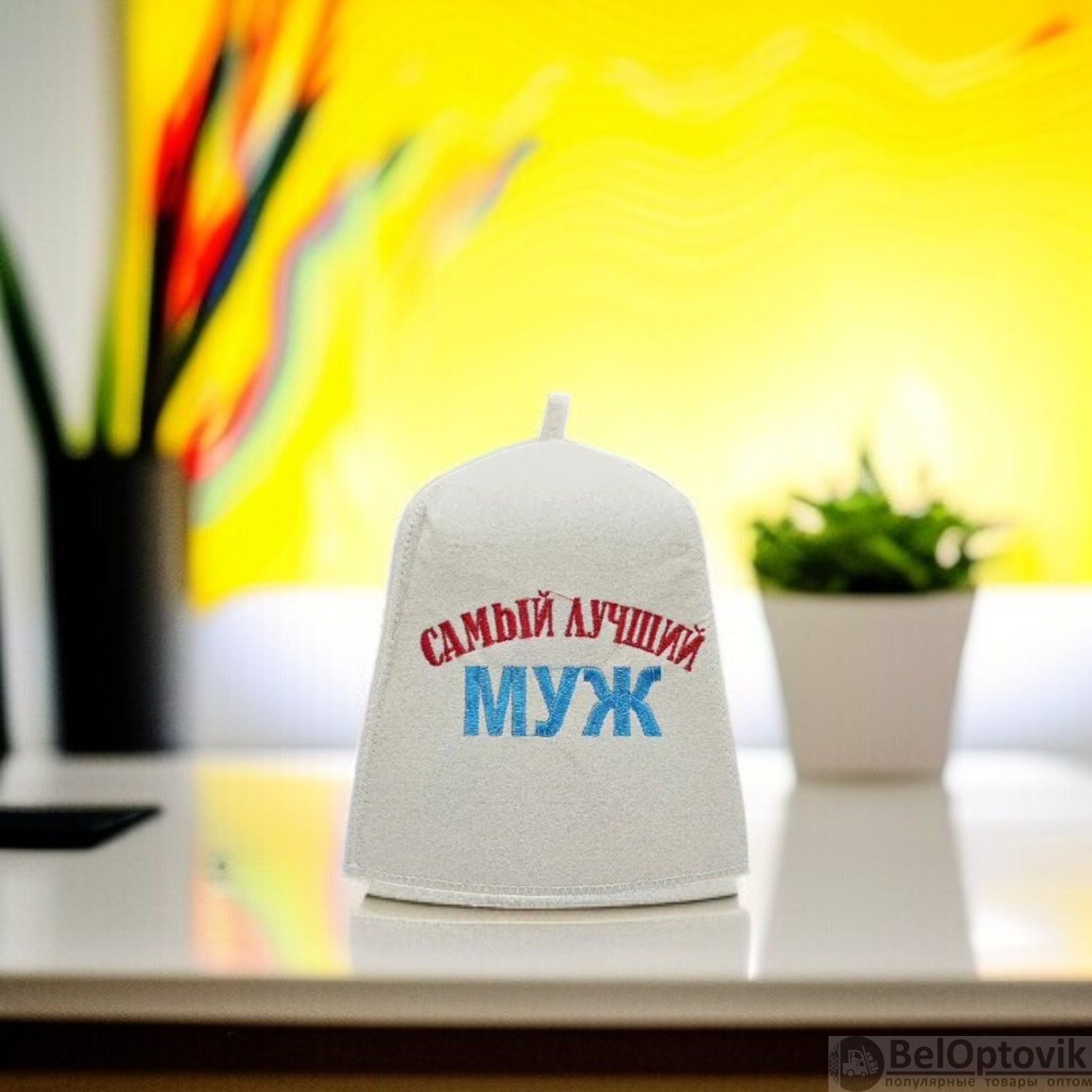 Купить Колпак для бани и сауны Crystal Textile, фетр, универсальный размер, высокое качество, белый / Защита и стиль с надписью "Самый лучший муж" на нашем сайте можно ОПТОМ от 200 шт. или меньше, если Вы покупаете у нас и другие товары (сборный заказ), цена указана за 1 шт. товара