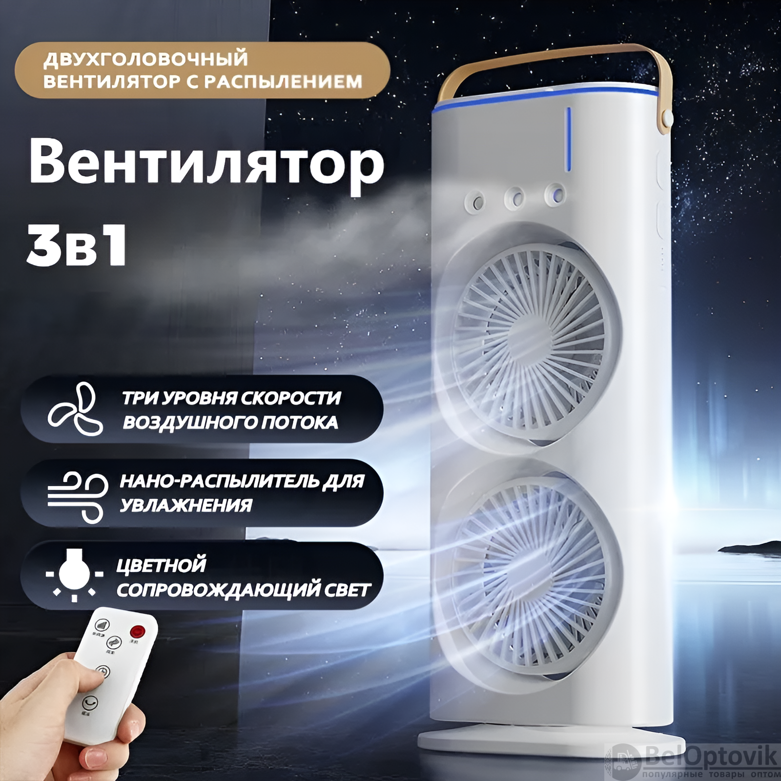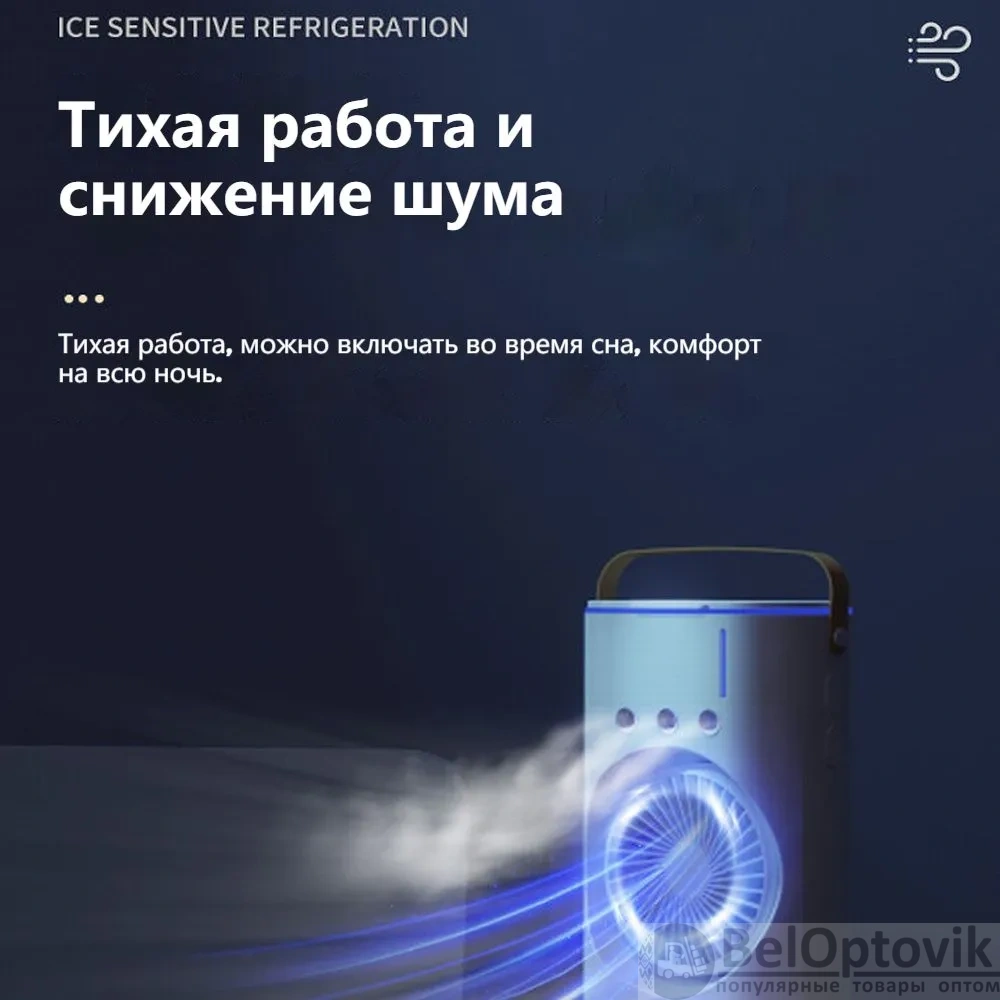Белый корпус с синей LED-подсветкой добавляет устройству современный вид, а два мощных вентилятора обеспечивают равномерное распределение прохладного воздуха. Этот мини-кондиционер станет вашим надежным спутником в жаркие дни, обеспечивая прохладу и комфорт, где бы вы ни находились.