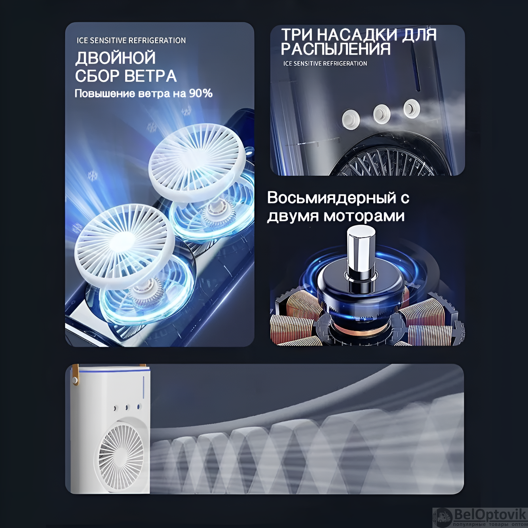 Почему купить Портативный настольный мини-кондиционер Blesklux EP-03, LED-подсветка, 3 скорости, увлажнение, белый / Прохлада и комфорт с тихой работой для вашего дома или офиса оптом выгодно у нас: