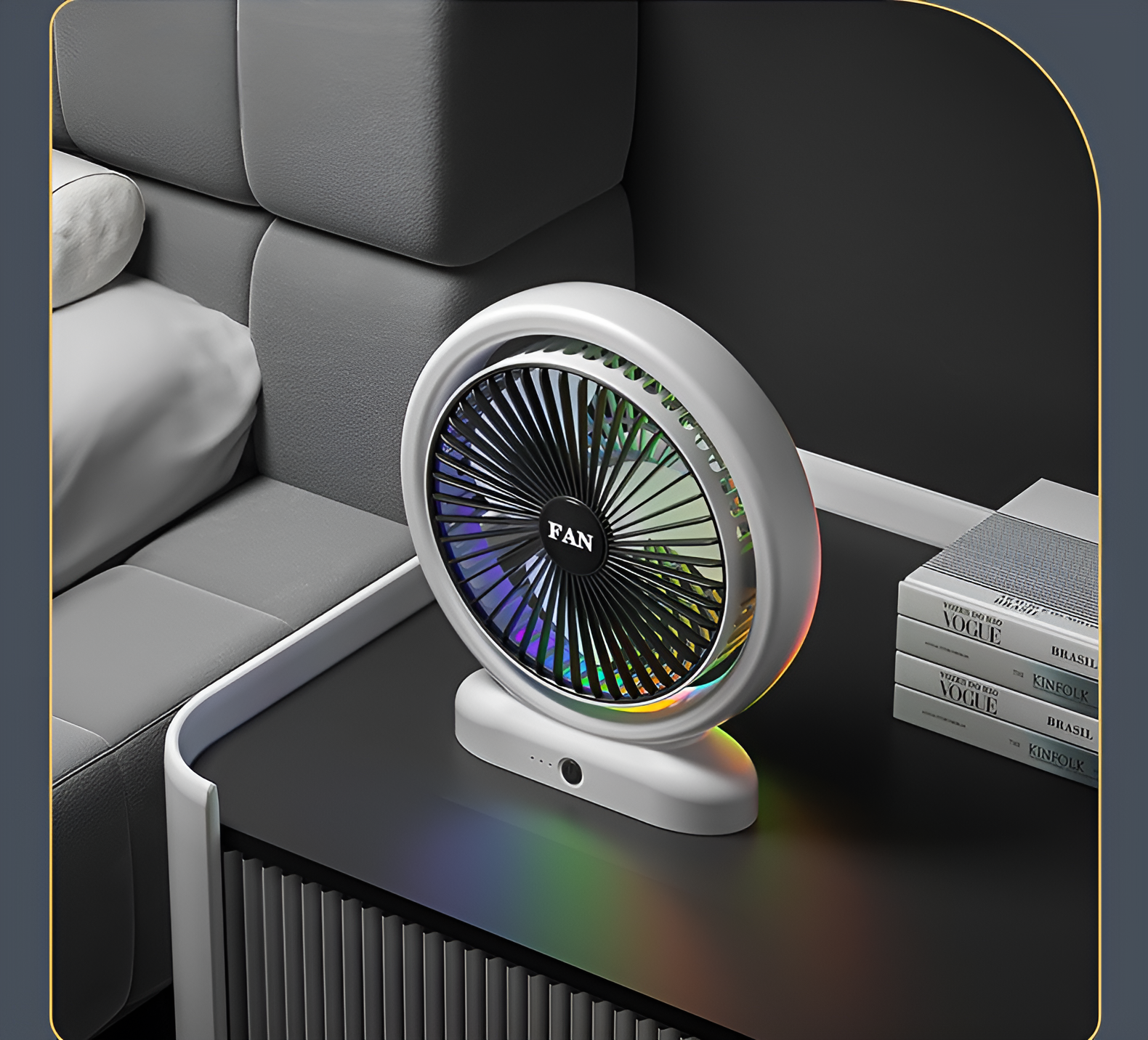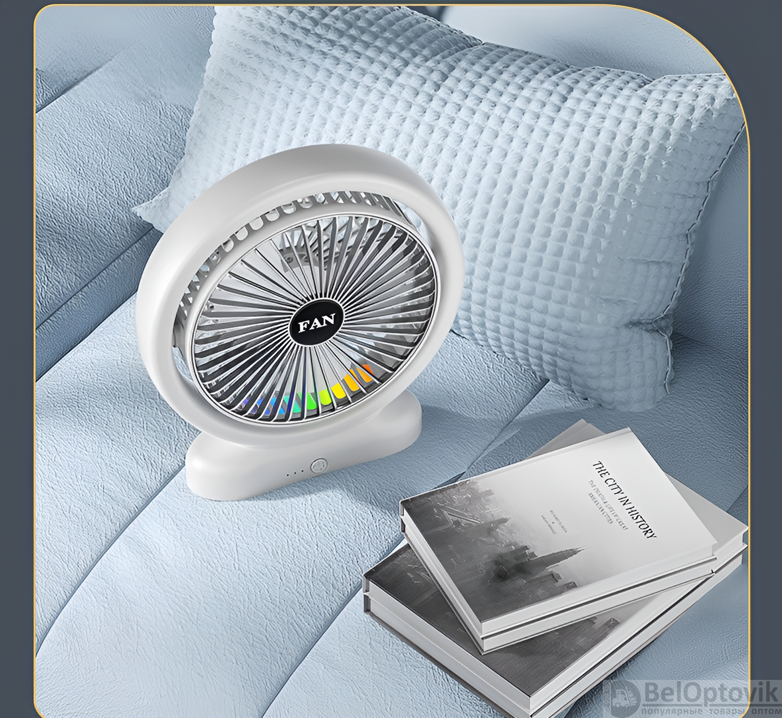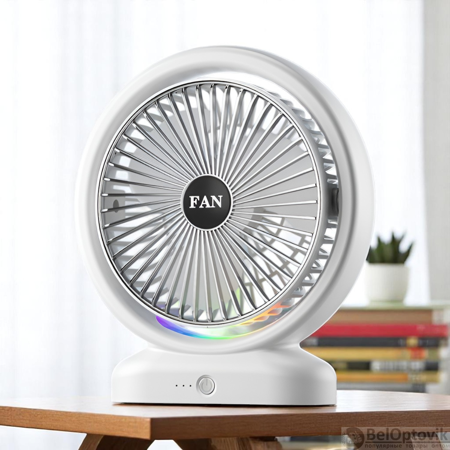 Купить Портативный настольный вентилятор JY-2254-L, 3 режима скорости, разноцветная подсветка, 5 Вт, бело-черный и бело-серебристый / Стильный комфорт с ярким акцентом на нашем сайте можно ОПТОМ от 20 шт. или меньше, если Вы покупаете у нас и другие товары (сборный заказ)