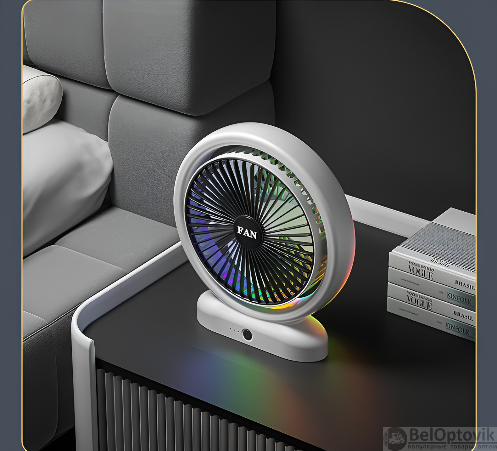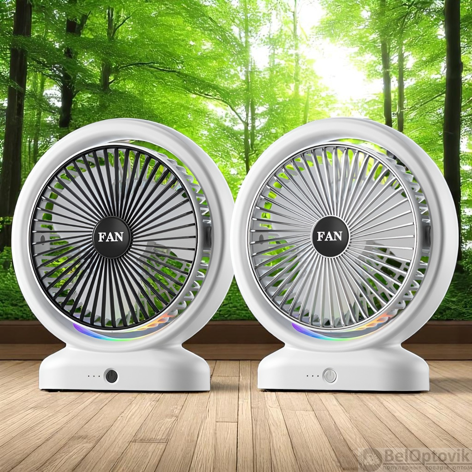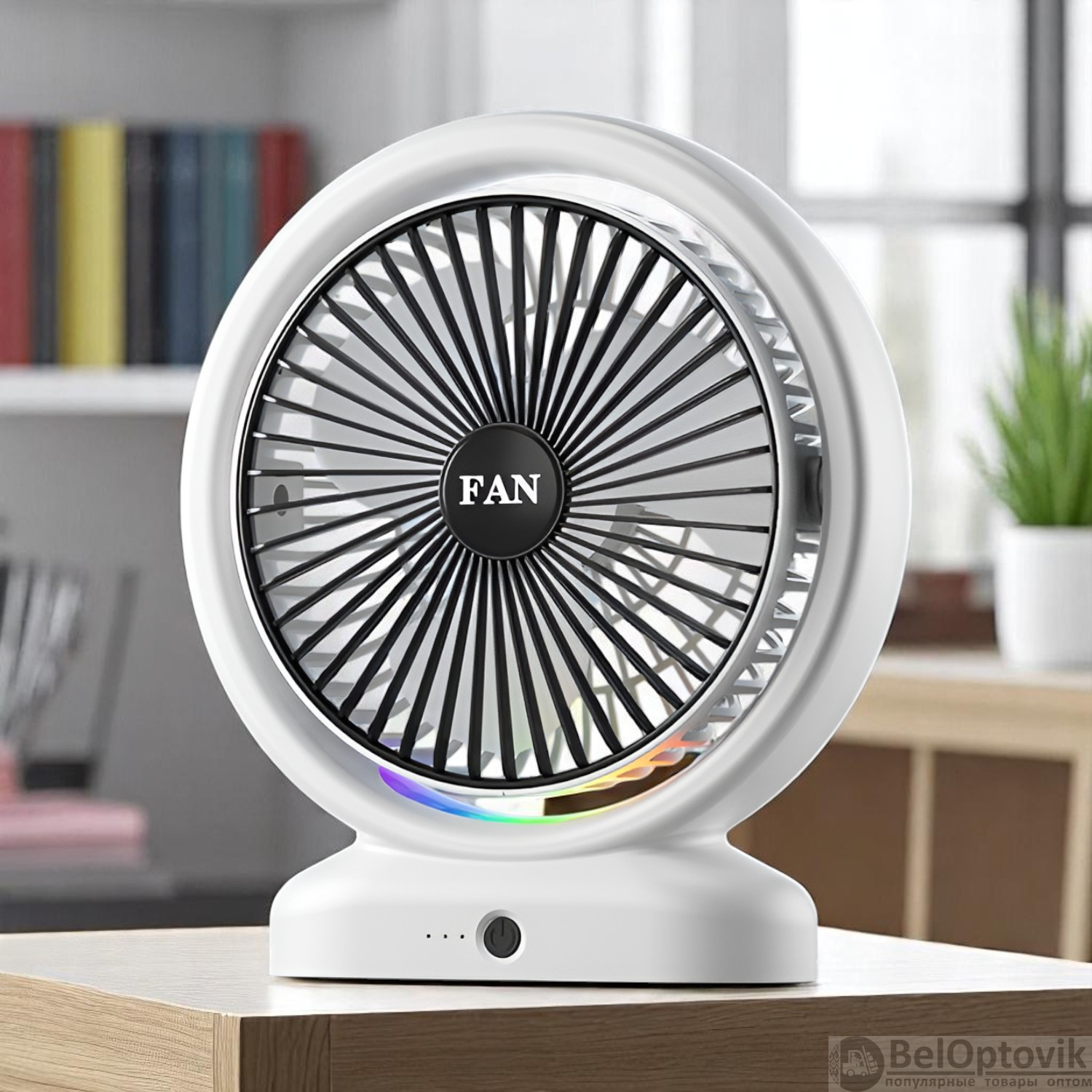 Почему купить Портативный настольный вентилятор JY-2254-L, 3 режима скорости, разноцветная подсветка, 5 Вт, бело-черный и бело-серебристый / Стильный комфорт с ярким акцентом оптом выгодно у нас: